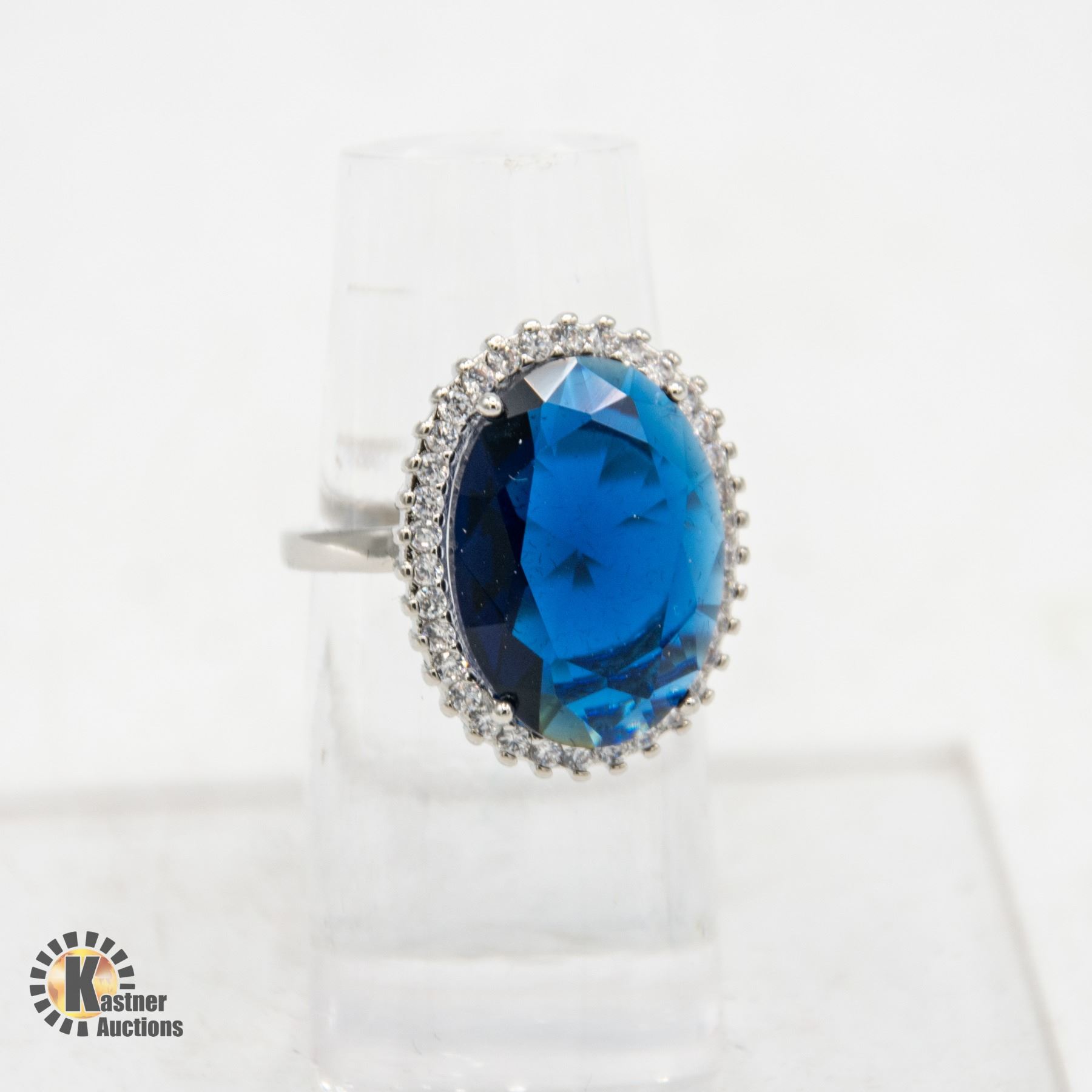 HALO OF CLEAR STONES SURROUNDING IT.ÿRING SIZE 7.5