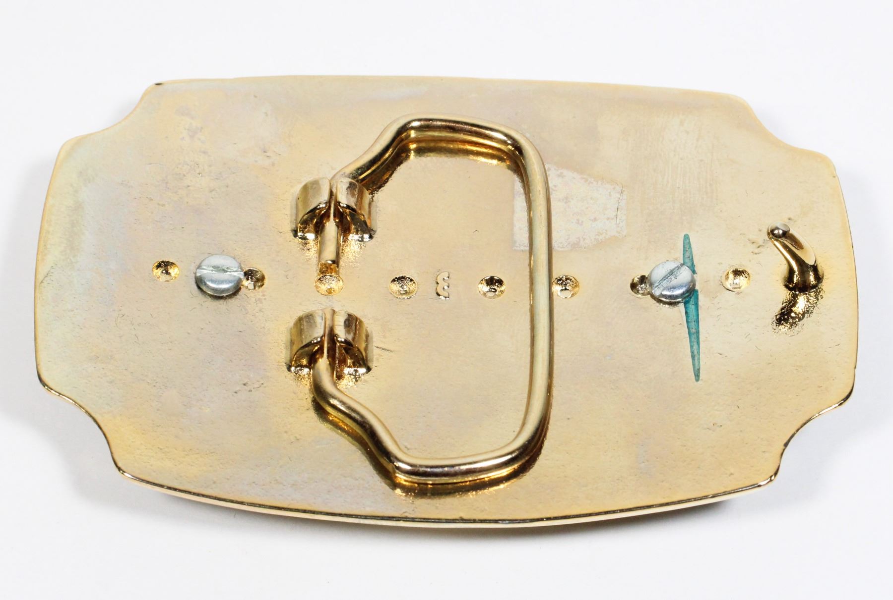 BELT BUCKLE HAS POLICE INSIGNIA PICTURE IN CIRCULAR CENTER ON BELT BUCKLE, AND IS UNMARKED ON REVERSE. UNITED STATES OF AMERICA POLICE LAW ENFORCEMENT INSIGNIA 1900'S 20TH CENTURY