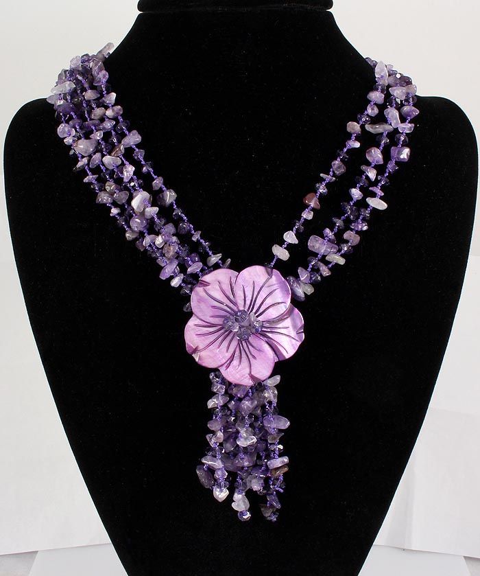 513.23CTW FOUR ROWS CHIPPED AMETHYST BEADS NECKLACE **|**|** 20 INCHES BEAUTIFUL 4 ROWS AMETHYST BEADS AND MOTHER OF PEARL THREAD NECKLACE ; MSRP: $200