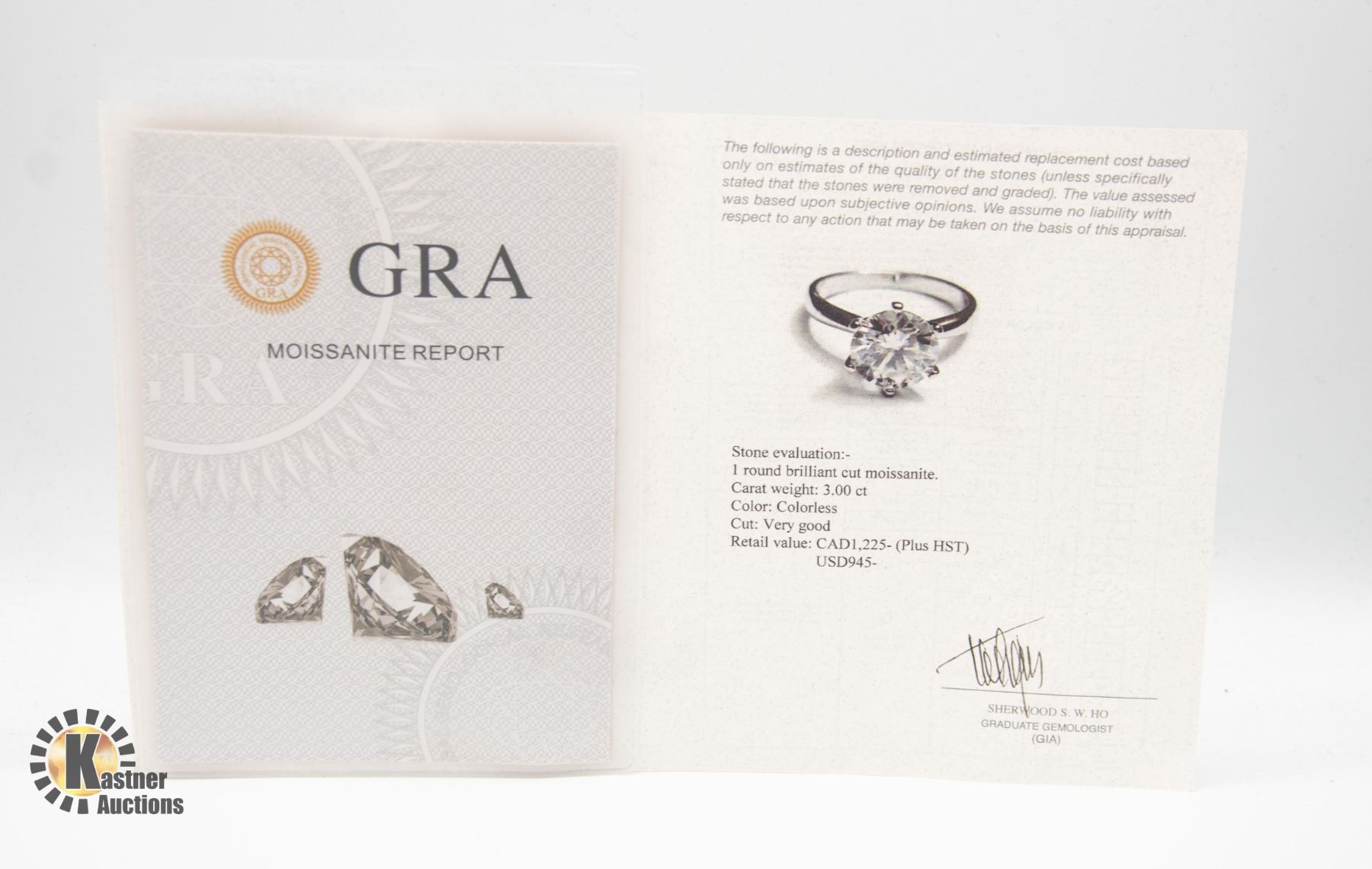 MOISSANITE STONE VVS D COLOR SET IN CENTER IN 925 SILVER RING SIZE 6 RETAIL VALUE $1,225.00 **ALL ITEMS MUST BE REMOVED BY 5PM SATURDAY, AUGUST 31ST 2024. ALL REMAINING ITEMS WILL BE SUBJECT TO A $6.00 PER DAY STORAGE CHARGE. ANY ITEMS REMAINING AFTER MONDAY, SEPTEMBER 23RD 2024 WILL BE CONSIDERED FORFEITED. NO REFUNDS WILL BE ISSUED FOR FORFEITED ITEMS. TO SCHEDULE A PICK UP APPOINTMENT CLICK HERE