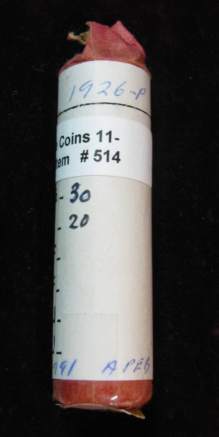514. 1926 P Solid Date Lincoln Cent Roll. VG-F. (50 pcs.).