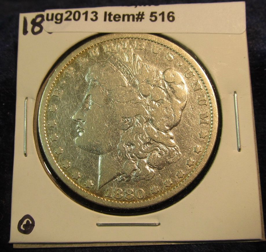 516. 1880 Philadelphia Mint U.S. Morgan Silver Dollar. VG-8.