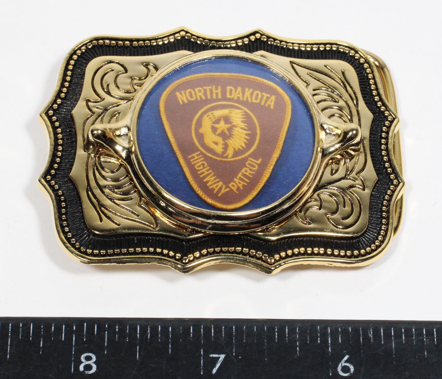PATROL BELT BUCKLE HAS POLICE INSIGNIA PICTURE IN CIRCULAR CENTER ON BELT BUCKLE, AND IS UNMARKED ON REVERSE. UNITED STATES OF AMERICA POLICE LAW ENFORCEMENT INSIGNIA 1900'S 20TH CENTURY