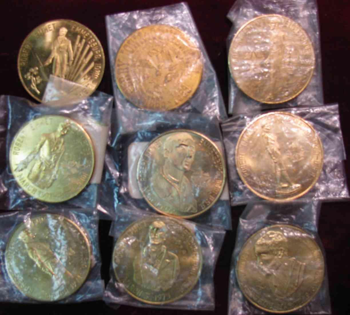 516. Set of Emmetsburgh, Ia. Irish Dollars 1967, 69, 70, 71, 72, 73, 74, 75, & 76. All BU. Brass. 39mm. (9 pcs.)
