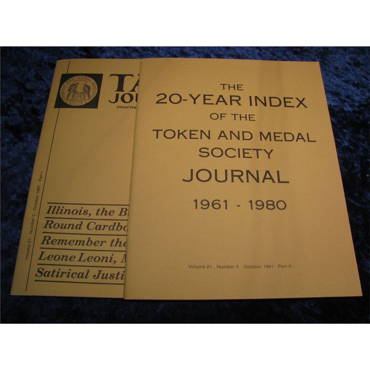 517. Oct. 1981 TAMS Journal Part 1 & 2 Features: "Illinois, the Bimetal State", "Round Cardboard Tokens", Remember the Tuscania", Leone Leoni, Medallic Sculptor", "Satirical Justice Medal", & "20-Year Index 1961-1980". Mint condition.