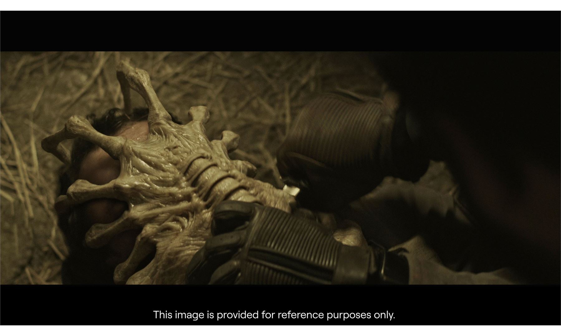ALIEN: COVENANT (2017) - Xenomorph Facehugger - A xenomorph facehugger from Ridley Scott's Alien: Covenant. David 8 (Michael Fassbender) incubated and unleashed praeto-facehuggers on Christopher Oram (Billy Crudup), Dan Lope (Demian Bichir), and Cole (Uli Latukefu). The facehuggers were brought to life with a combination of VFX by Framestore and practical SFX overseen by creature design supervisor Conor O'Sullivan and creature effects supervisor Adam Johansen.