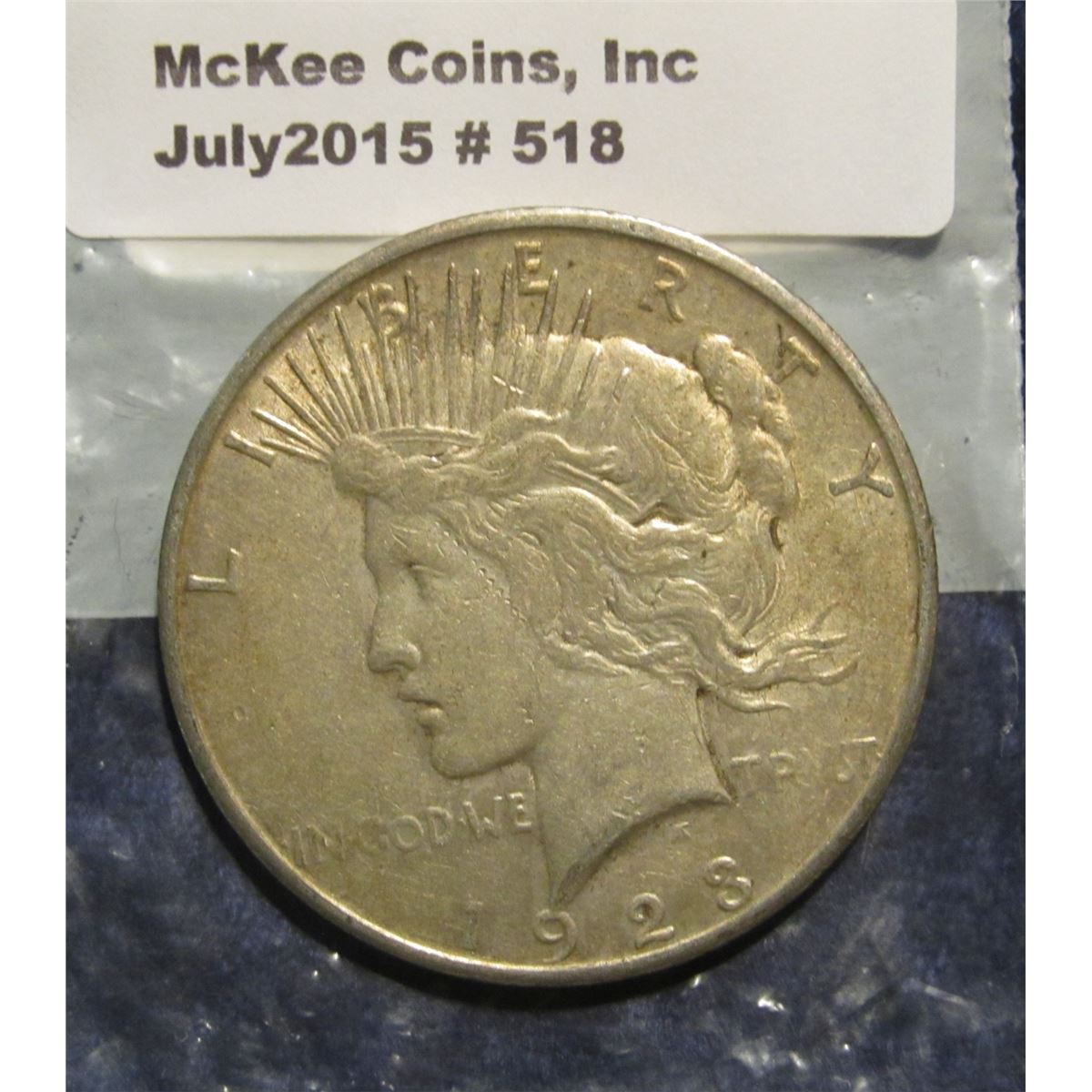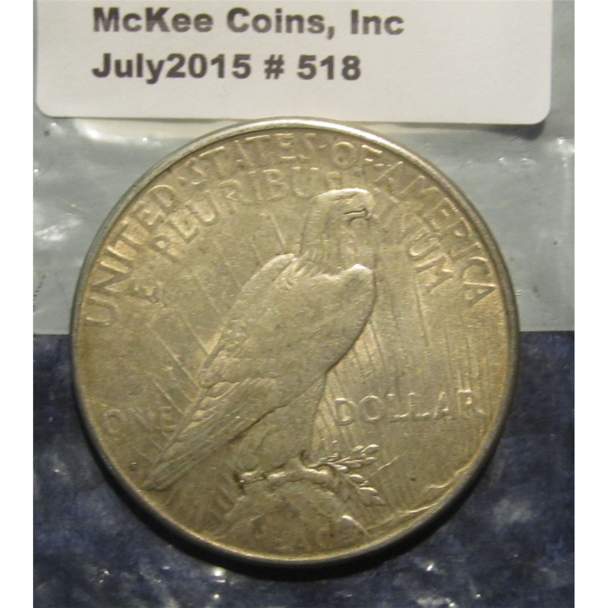 518. 1923 S U.S. Peace Silver Dollar. VF 20.