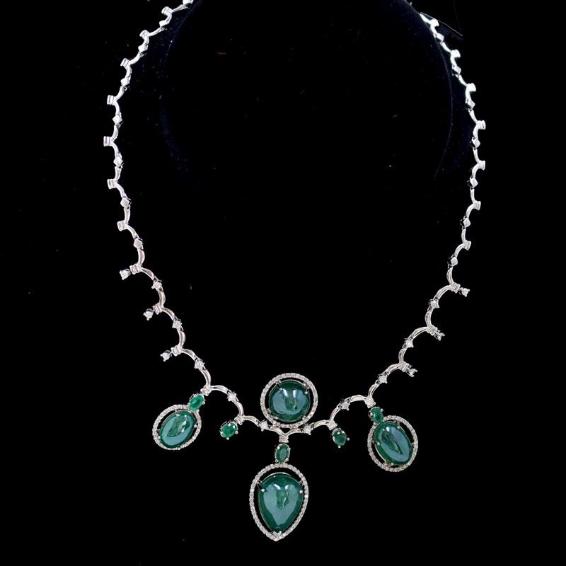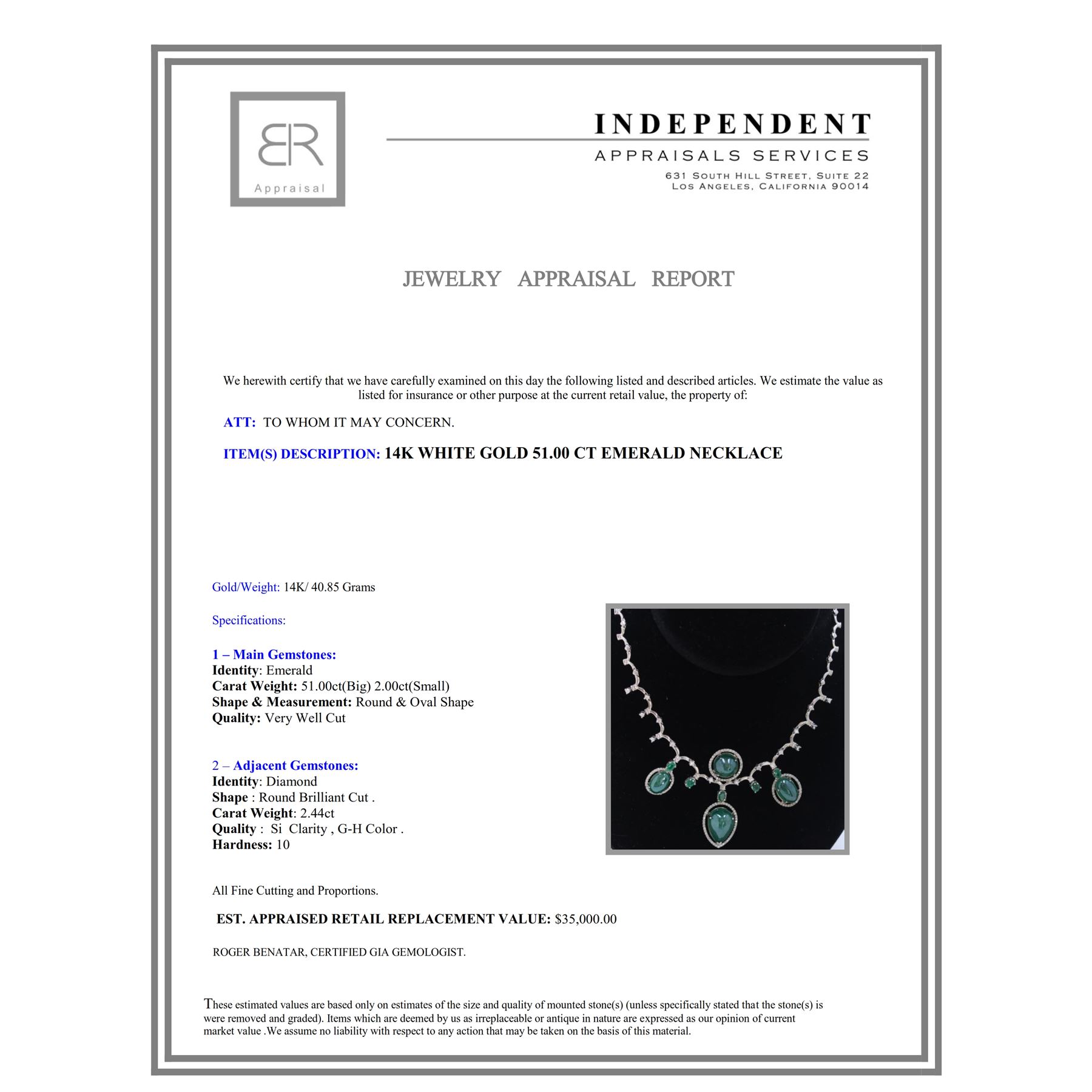 14k White Gold Emerald Necklace:40.85 grams / Diamond:2.44ct / Emerald (Small):2.00ct / Emerald (Big):51.00ct /#GVN1431