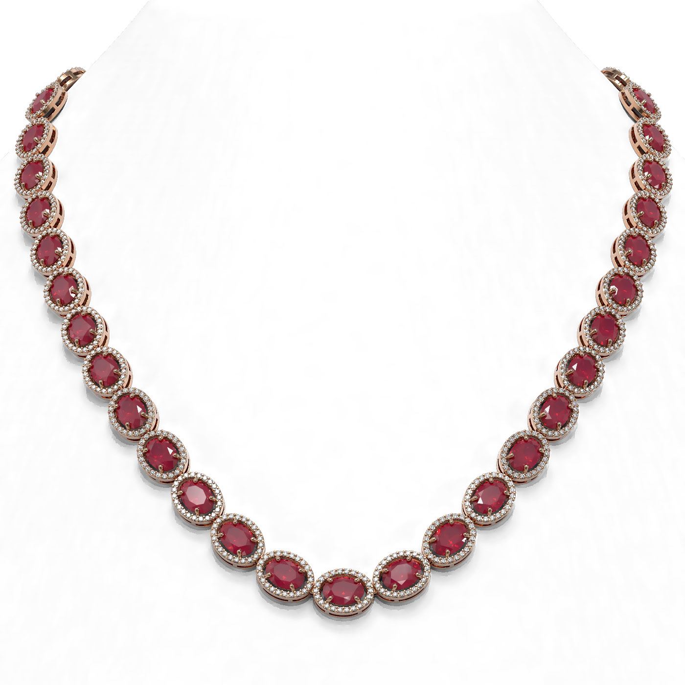 REF-763A6N - SKU: 40557 ---- 52.15 ctw Ruby & Diamond Micro Pave Halo Necklace 10k Rose Gold