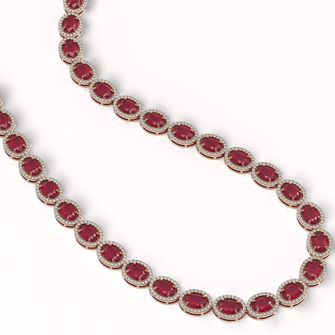 SKU: 40557 ---- 52.15 ctw Ruby & Diamond Micro Pave Halo Necklace 10k Rose Gold
