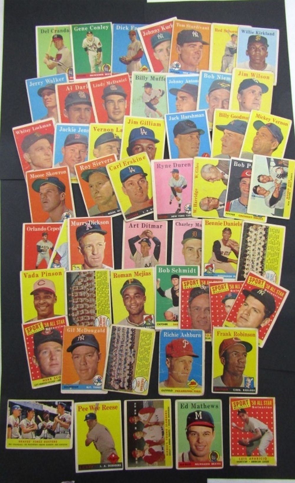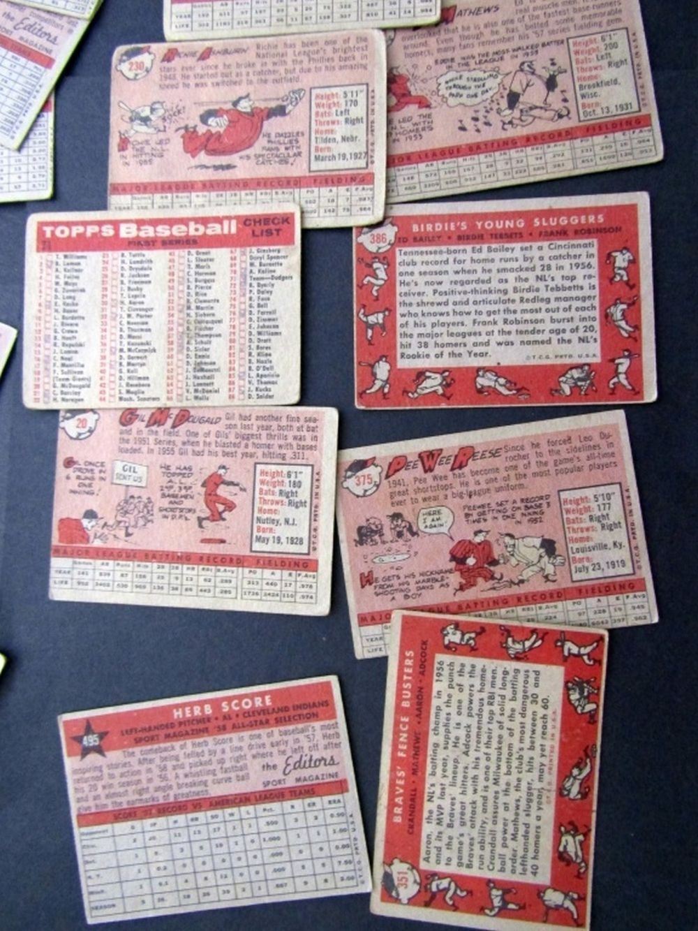 #20 McDOUGALD, #71 DODGERS, #285 FRANK ROBINSON, #51 FENCE BUSTERS, #75 REESE, #386 SLUGGERS, #440 MATHEWS, #483 APARICIO plus (43) OTHER BASEBALL PLAYERS - VG//GOOD some VGEX