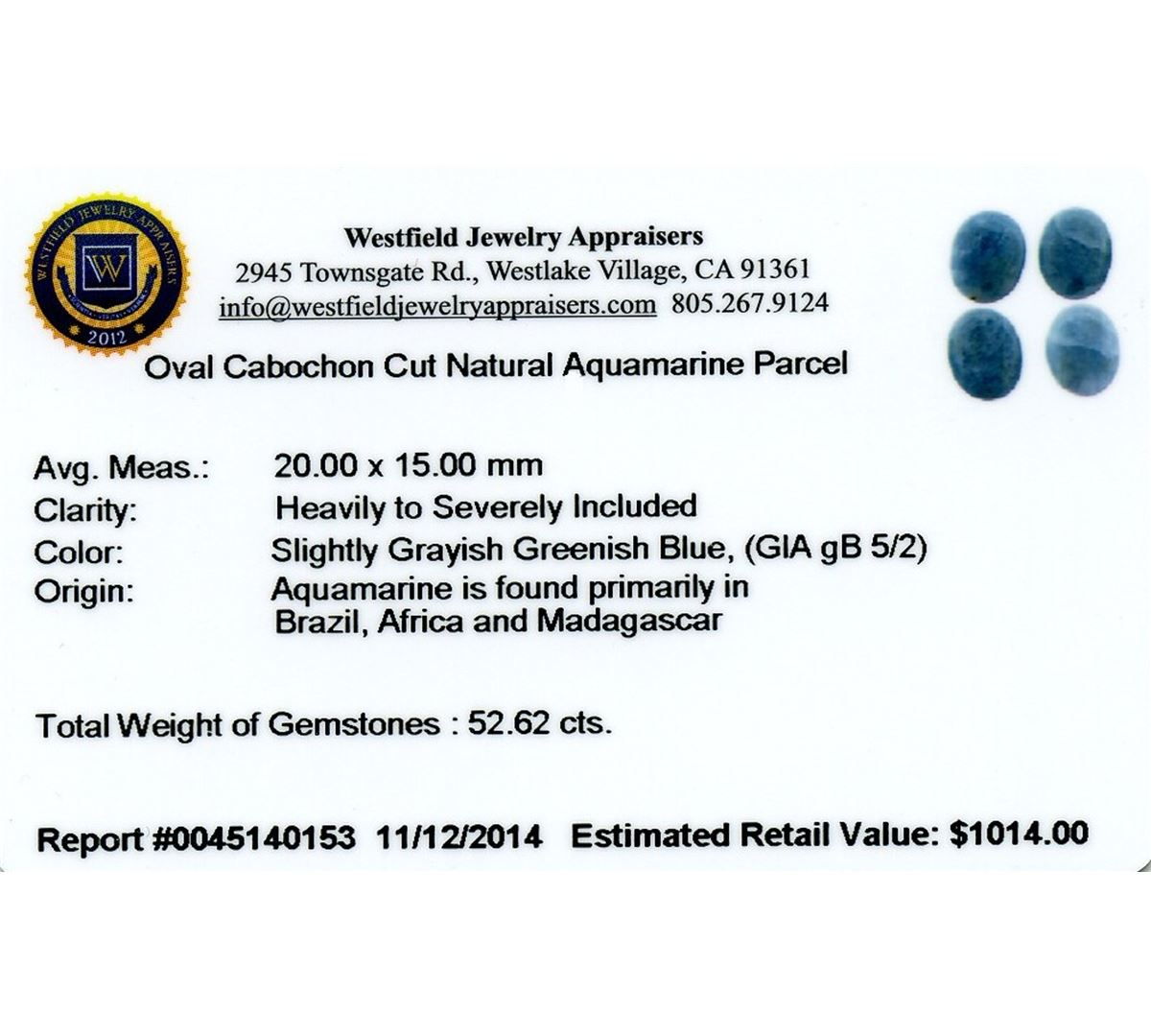 52.62cts Oval Cut Oval Cabochon Cut Natural Aquamarine Parcel. Westfield Appraised at $1,014.00.