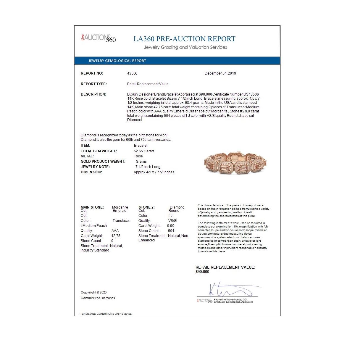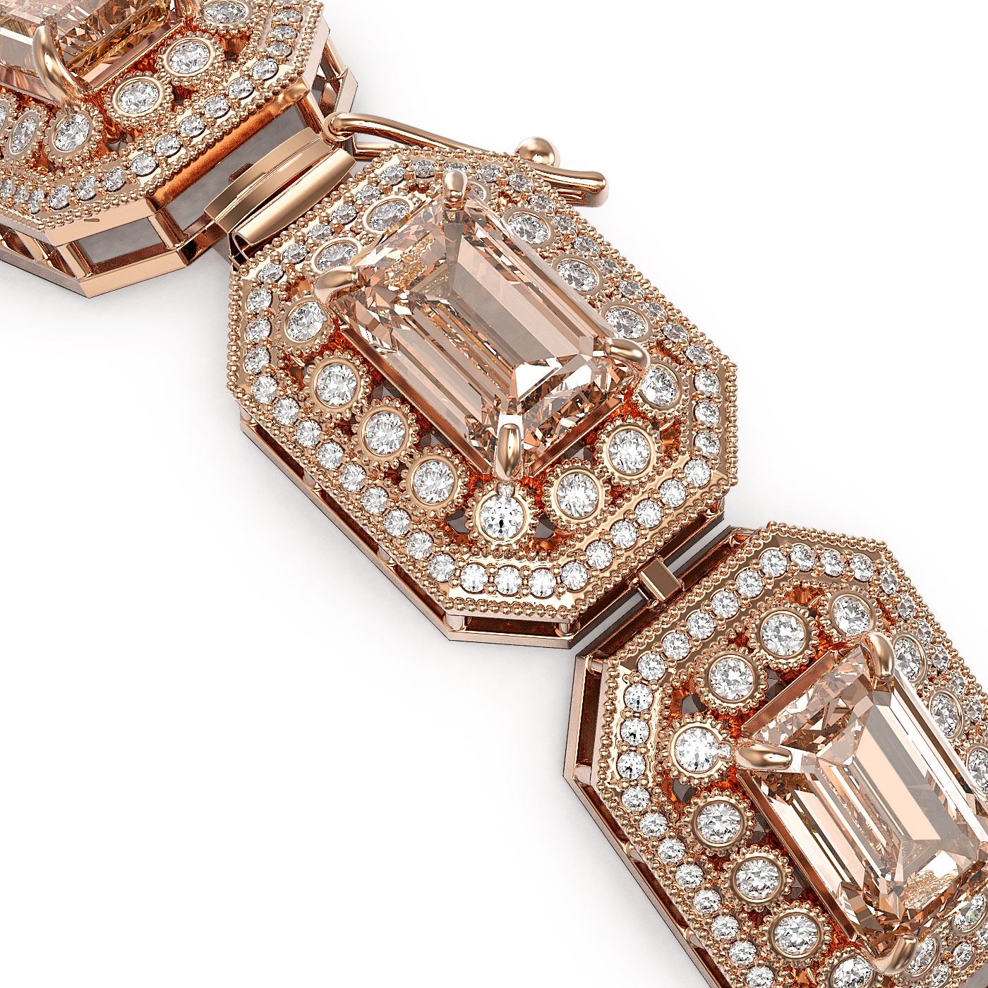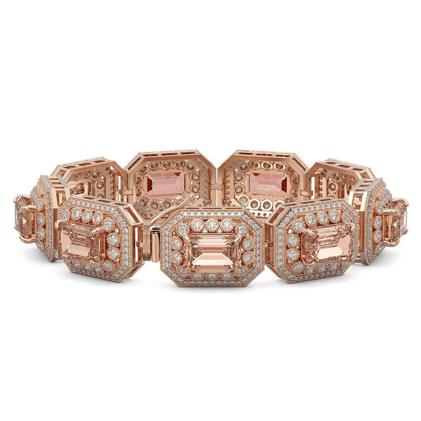 REF-1818W4H - SKU: 43506 ---- 52.65 ctw Morganite & Diamond Victorian Bracelet 14K Rose Gold