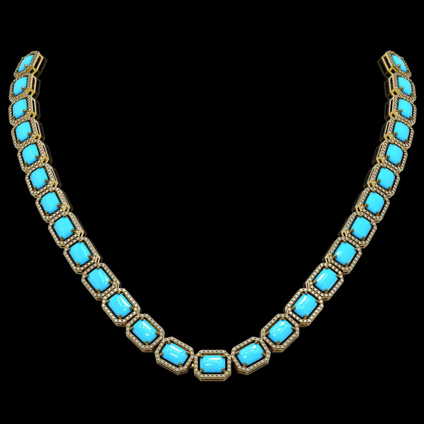 REF-670M9G - SKU: 46059 ---- 52.89 ctw Turquoise & Diamond Micro Pave Halo Necklace 10k Yellow Gold