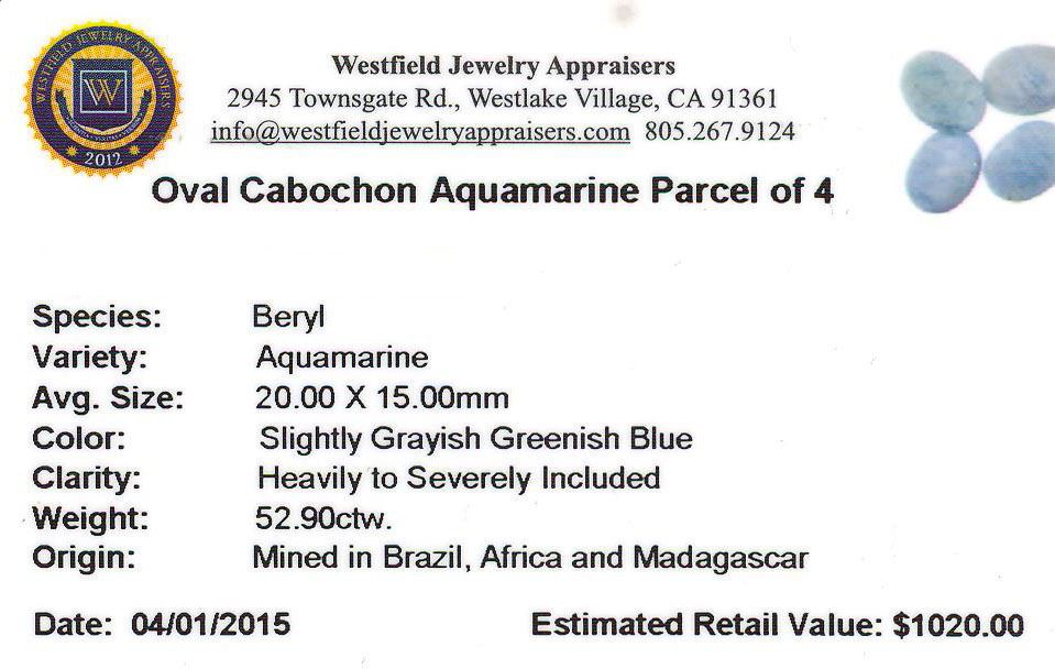 One 52.90ctw Oval Cabochon Aquamarine Parcel.