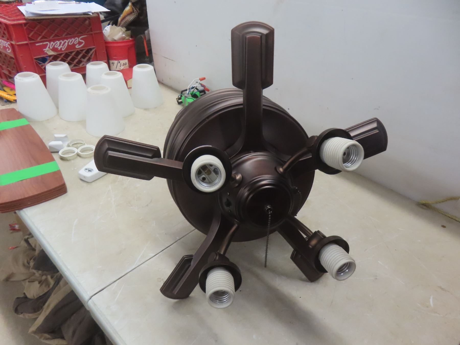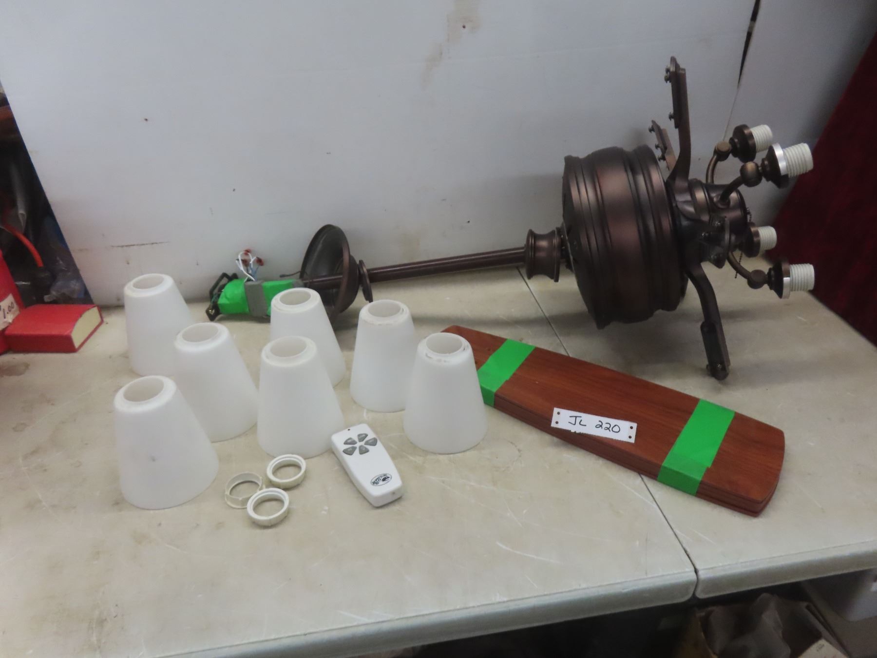 52" Ceiling Fan with Four Lights, Three Extra Shades, and Remote (Working)