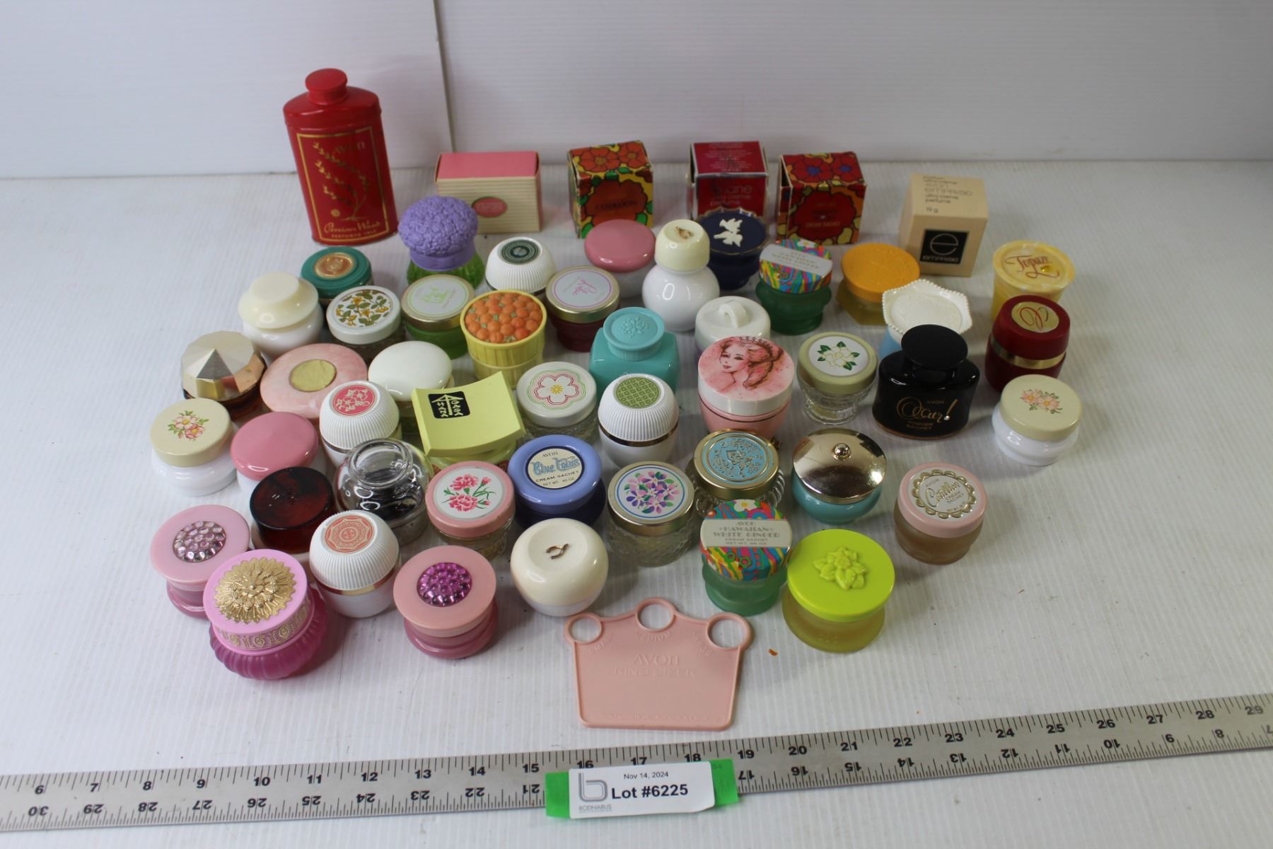 (52) Empty Vintage Avon Amenities Containers (Perfumes, Creams, Talc), Avon Ring Sizer