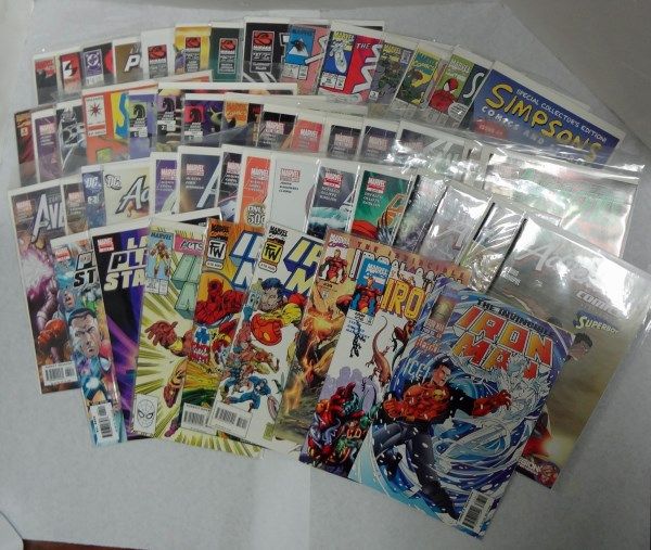 52-MIXED MARVEL COMIC BOOKS, INCLUDES THE SHROUD, THE SENTRY, TALES OF THE TMNT, SILVER HAWK, SILVER SURFER, SIMPSONS, SLEEPWALKER, SOLO, SHADOW, SHREK AND IRON MAN COVER VALUE $90