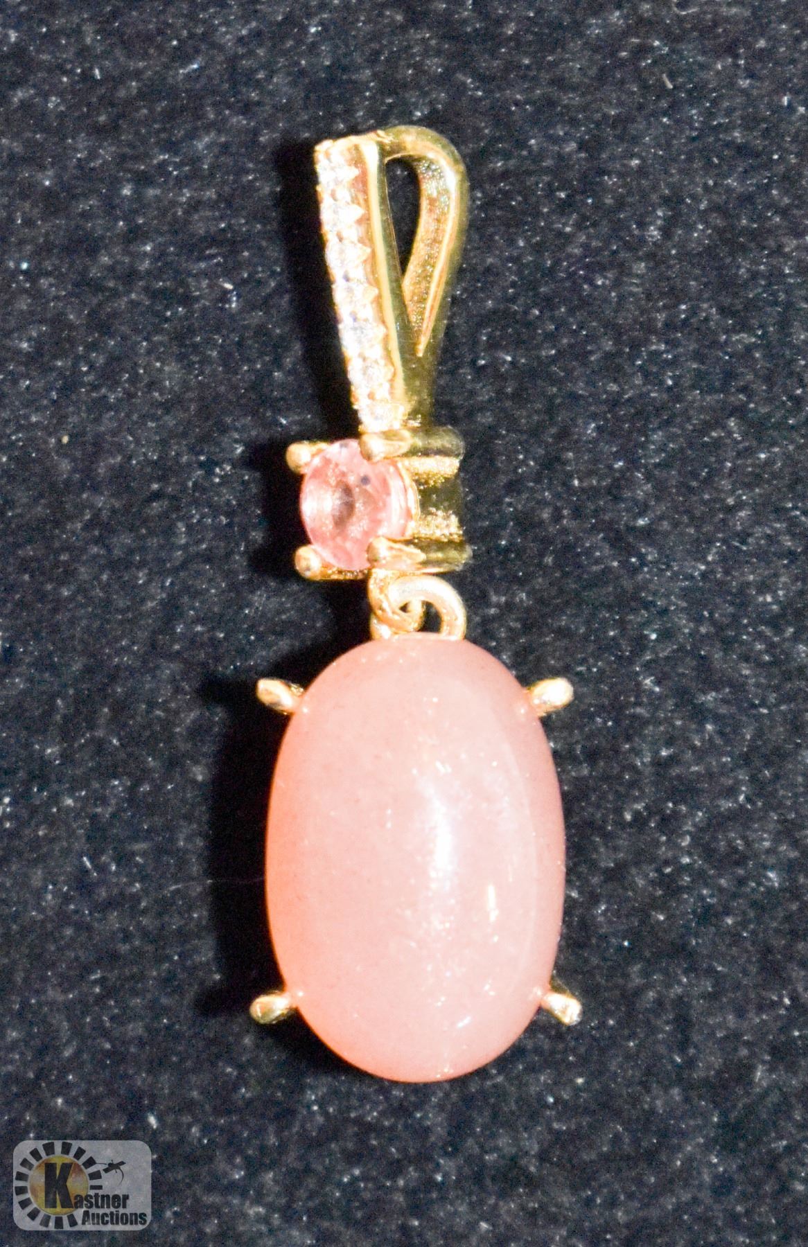#52-NATURAL UNHEATED SUNSTONE,SAPPHIRE.CZ PENDANT