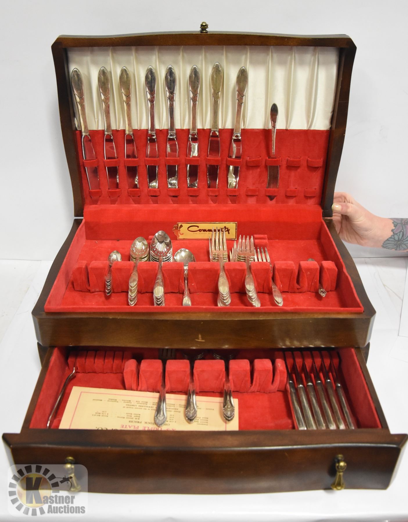1932, 8 DEMITASSE SPOONS, 8 TEA SPOONS, 8 OVAL DESSERT SPOONS, SUGAR SPOON, 8 LUNCHEON KNIFE, FLAT BUTTER SPREADER KNIFE, 8 DINNER FORKS, 8 SALAD FORKS, 2 PICKLE FORKS