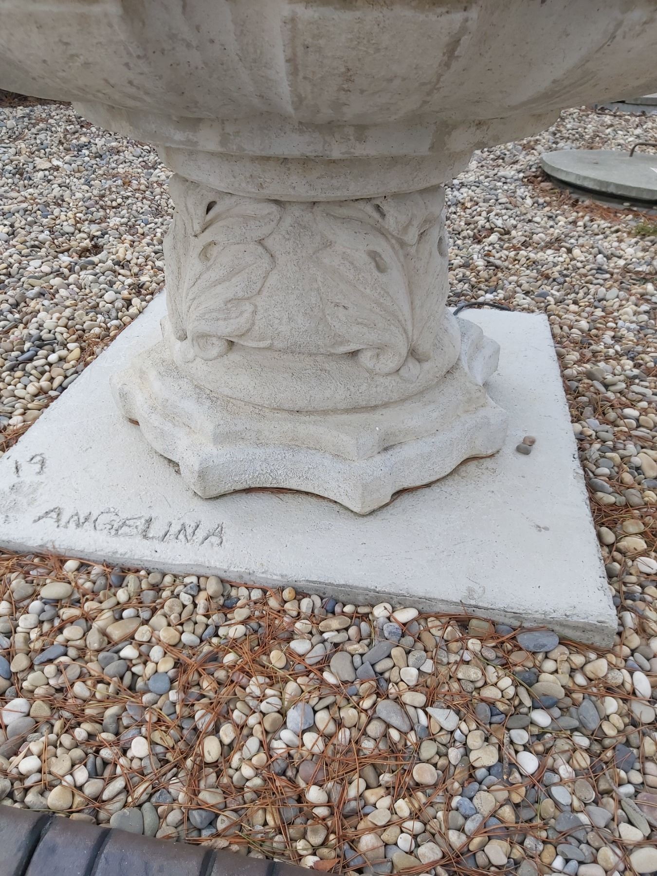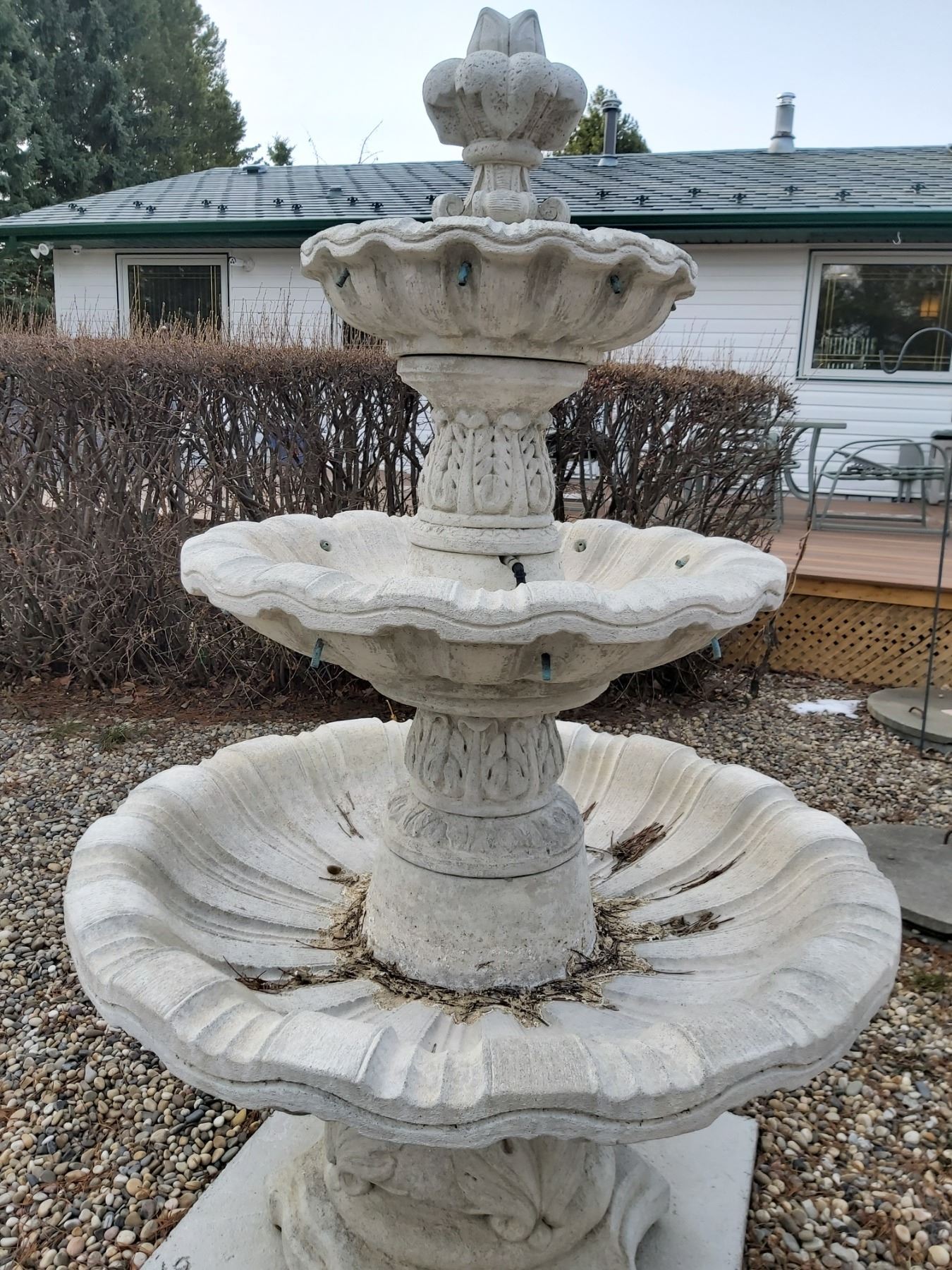 52" W X 7' 4 Level Concrete Fountain. Comes with pump. Very Heavy. Comes apart in pieces.