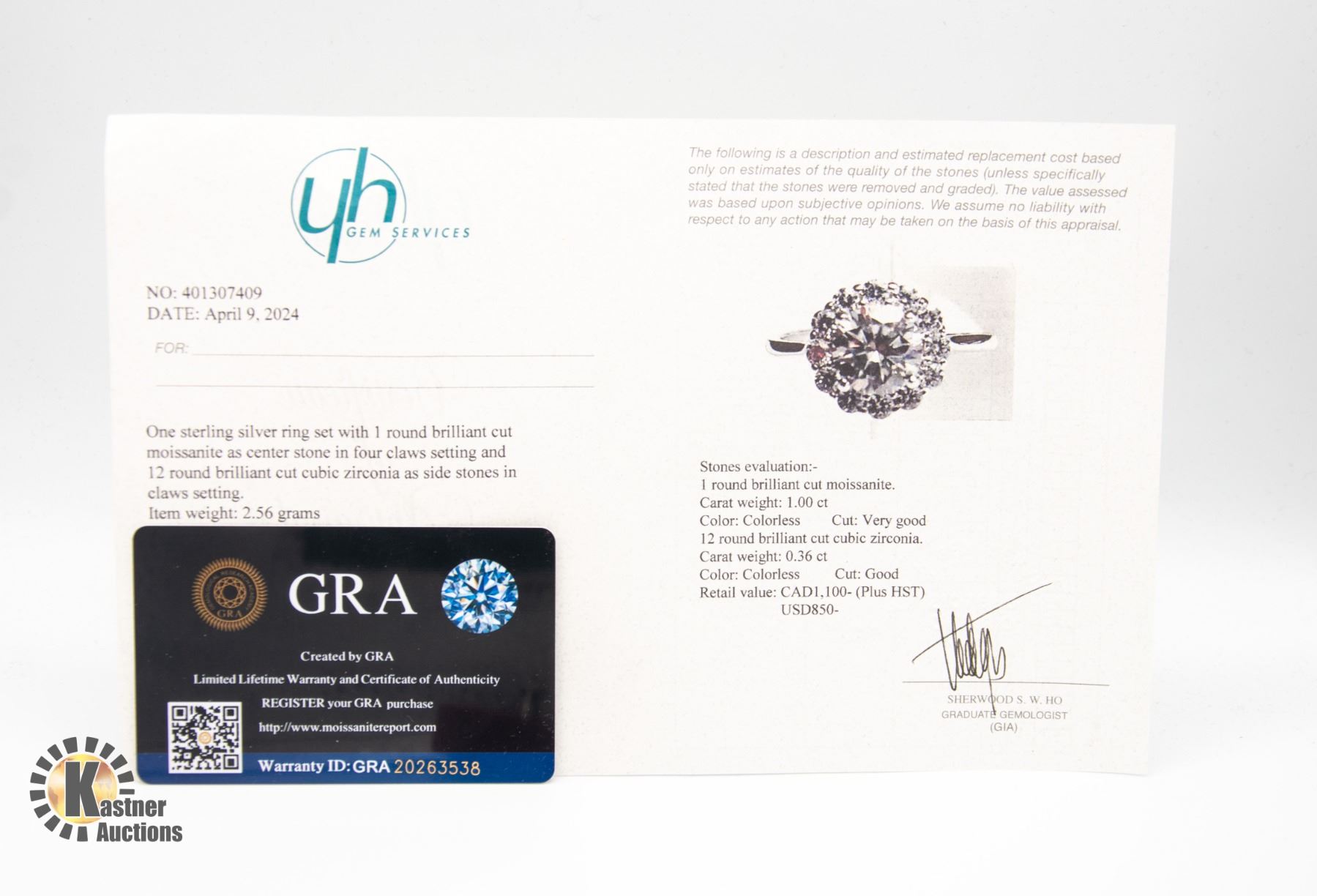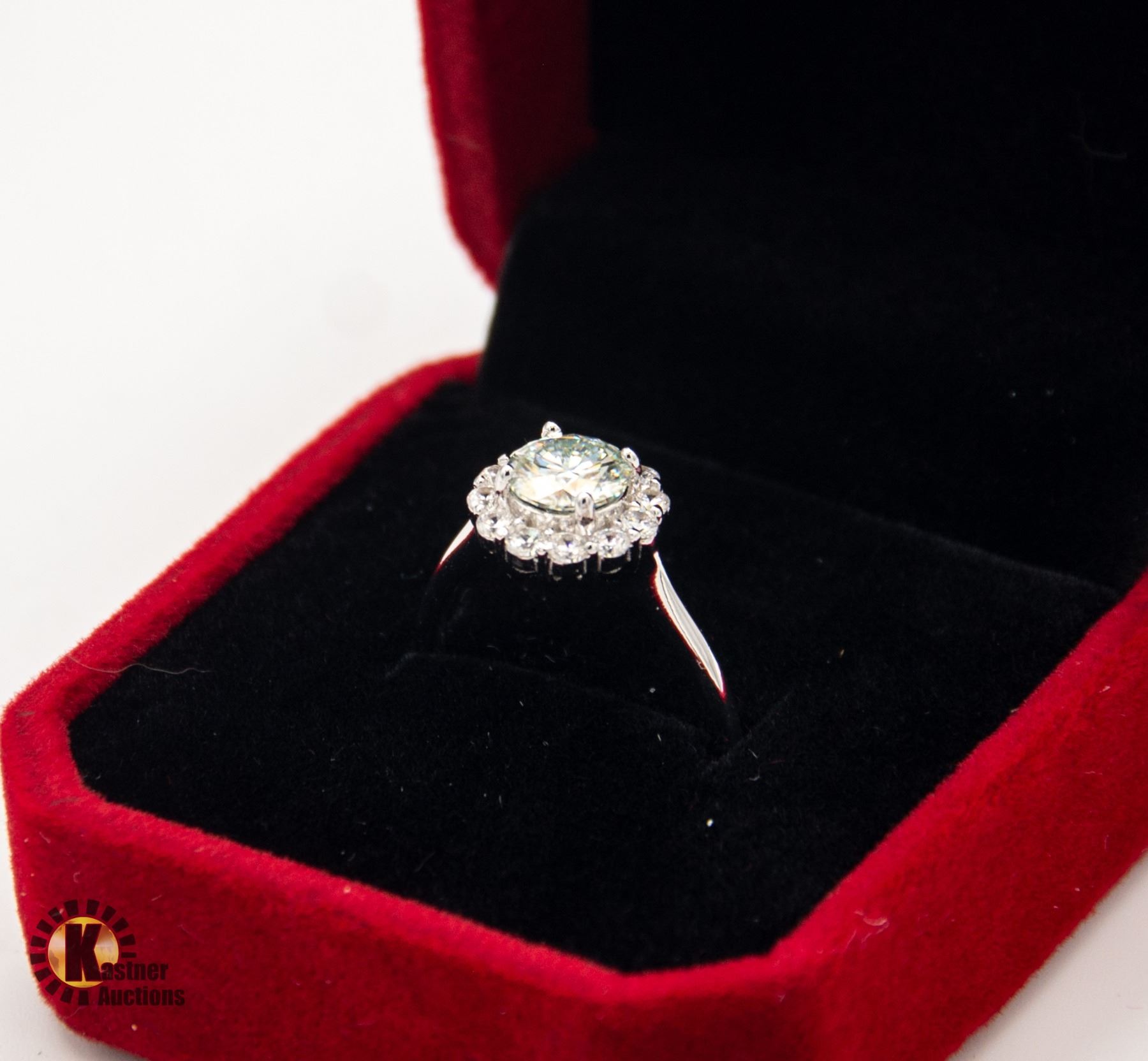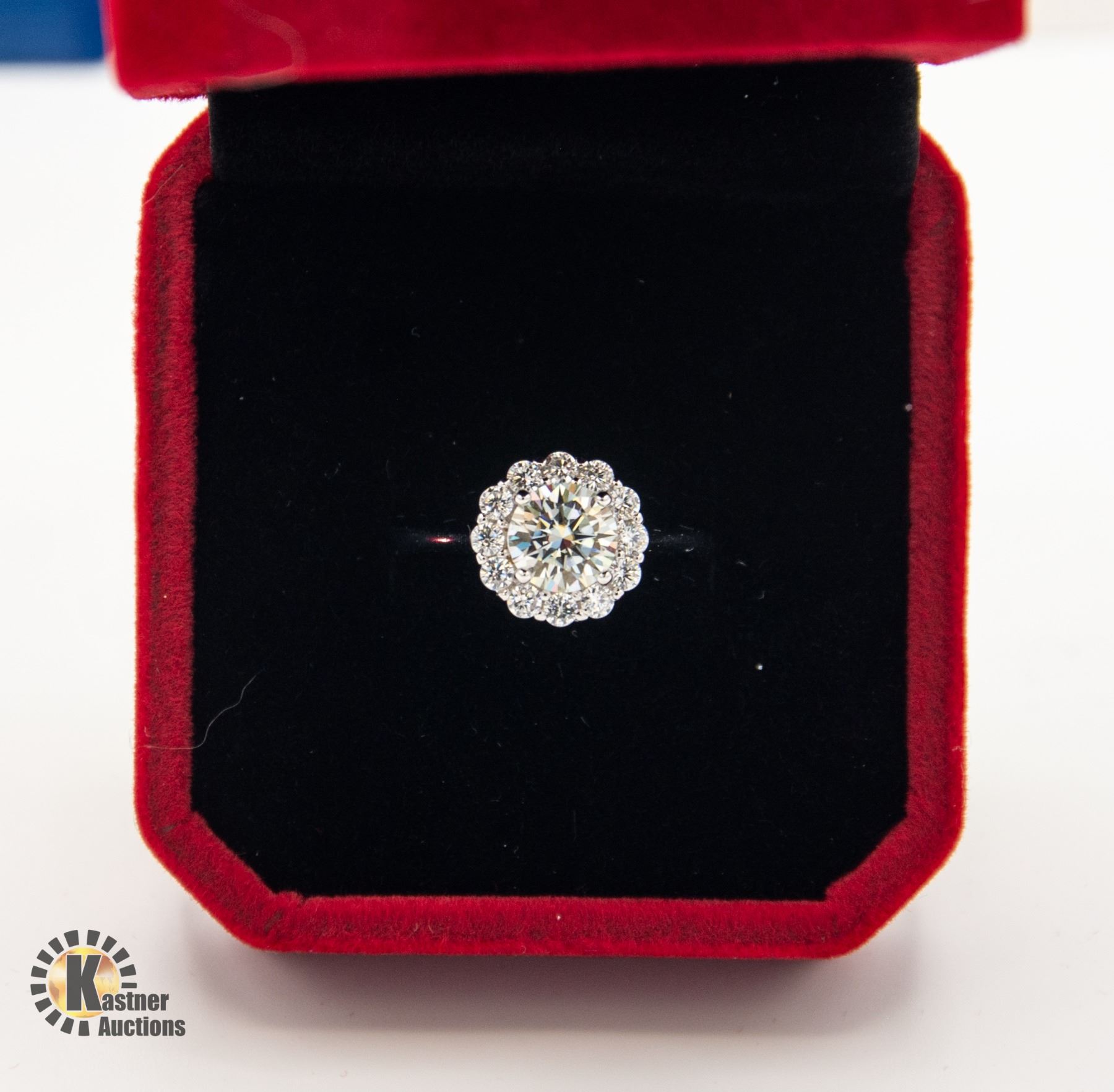 MOISSANITE STONE VVS D COLOR SET IN CENTER IN 925 SILVER RING SIZE ADJUSTABLE RETAIL VALUE $1,100.00 **ALL ITEMS MUST BE REMOVED BY 5PM SATURDAY, AUGUST 31ST 2024. ALL REMAINING ITEMS WILL BE SUBJECT TO A $6.00 PER DAY STORAGE CHARGE. ANY ITEMS REMAINING AFTER MONDAY, SEPTEMBER 23RD 2024 WILL BE CONSIDERED FORFEITED. NO REFUNDS WILL BE ISSUED FOR FORFEITED ITEMS. TO SCHEDULE A PICK UP APPOINTMENT CLICK HERE