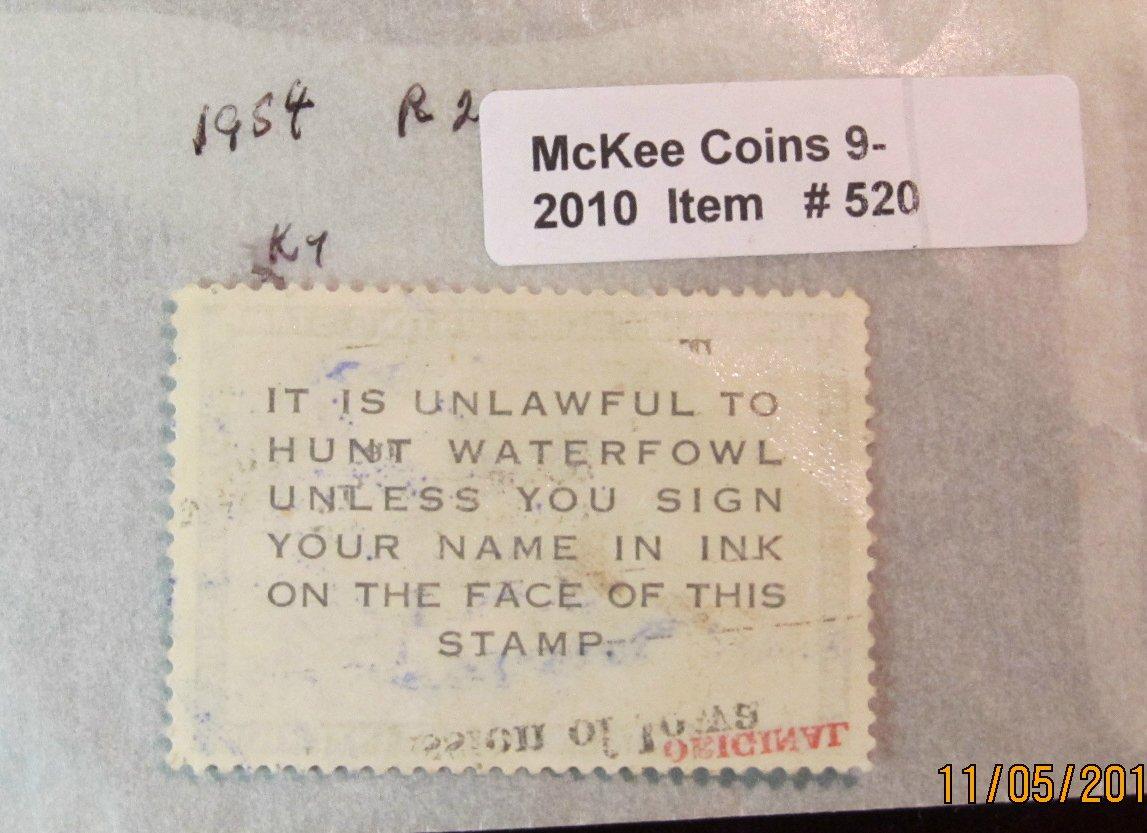 520. 1954 Federal Migratory Bird Hunting Stamp. Mint. Unused. VF. RW21. Catalog Value $75.00.