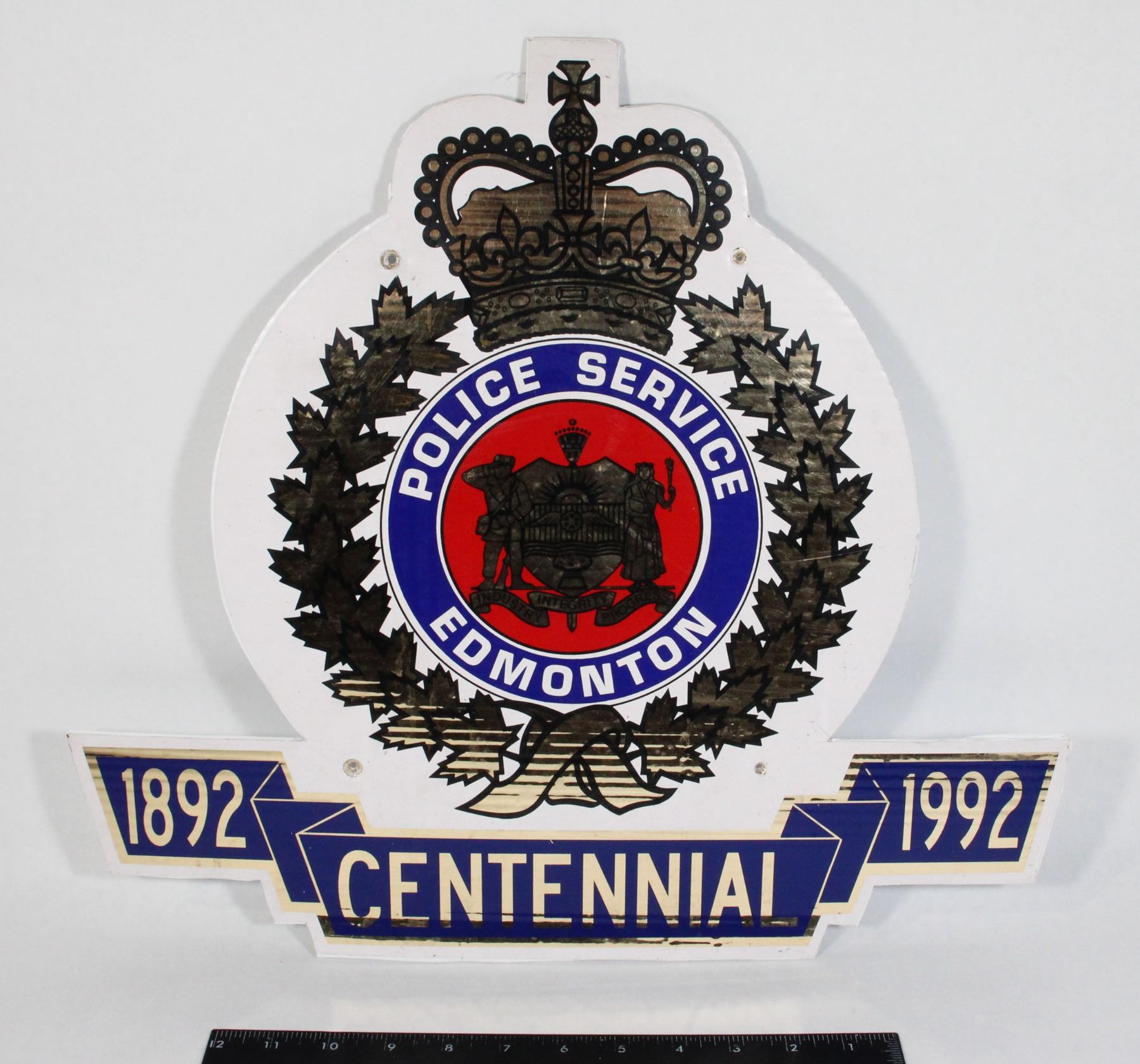 LIGHT PLASTIC CARD MATERIAL 1892 TO 1992 SIZE 18.5 INCHES BY 16.5 INCHES ALBERTA CANADA LAW ENFORCEMENT