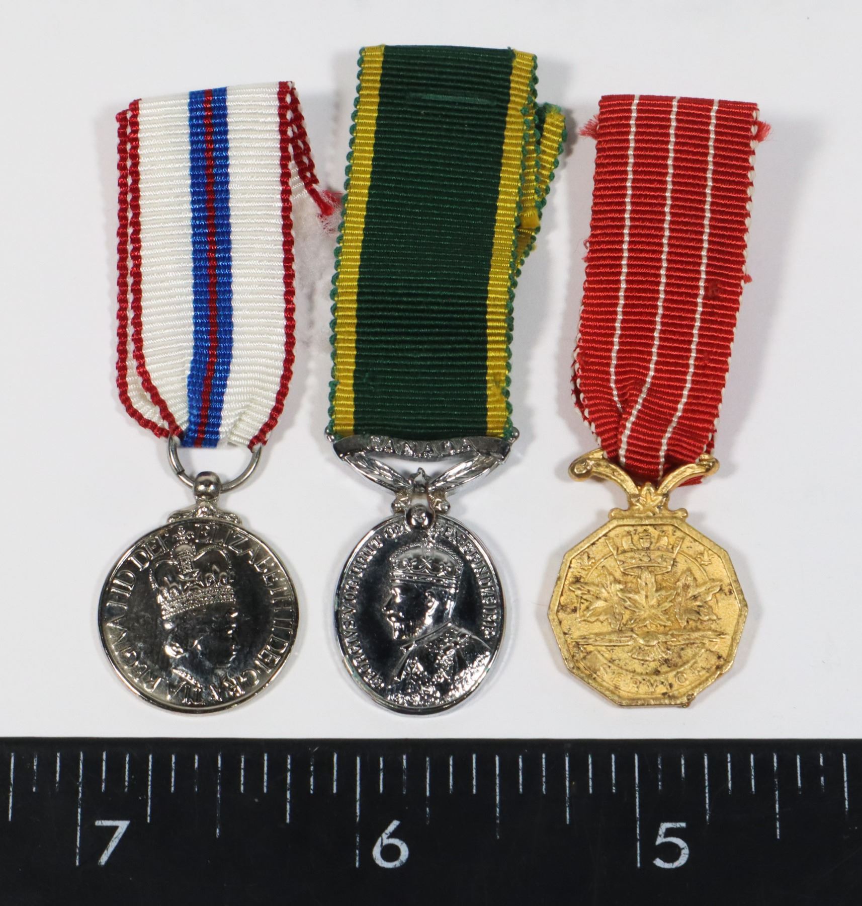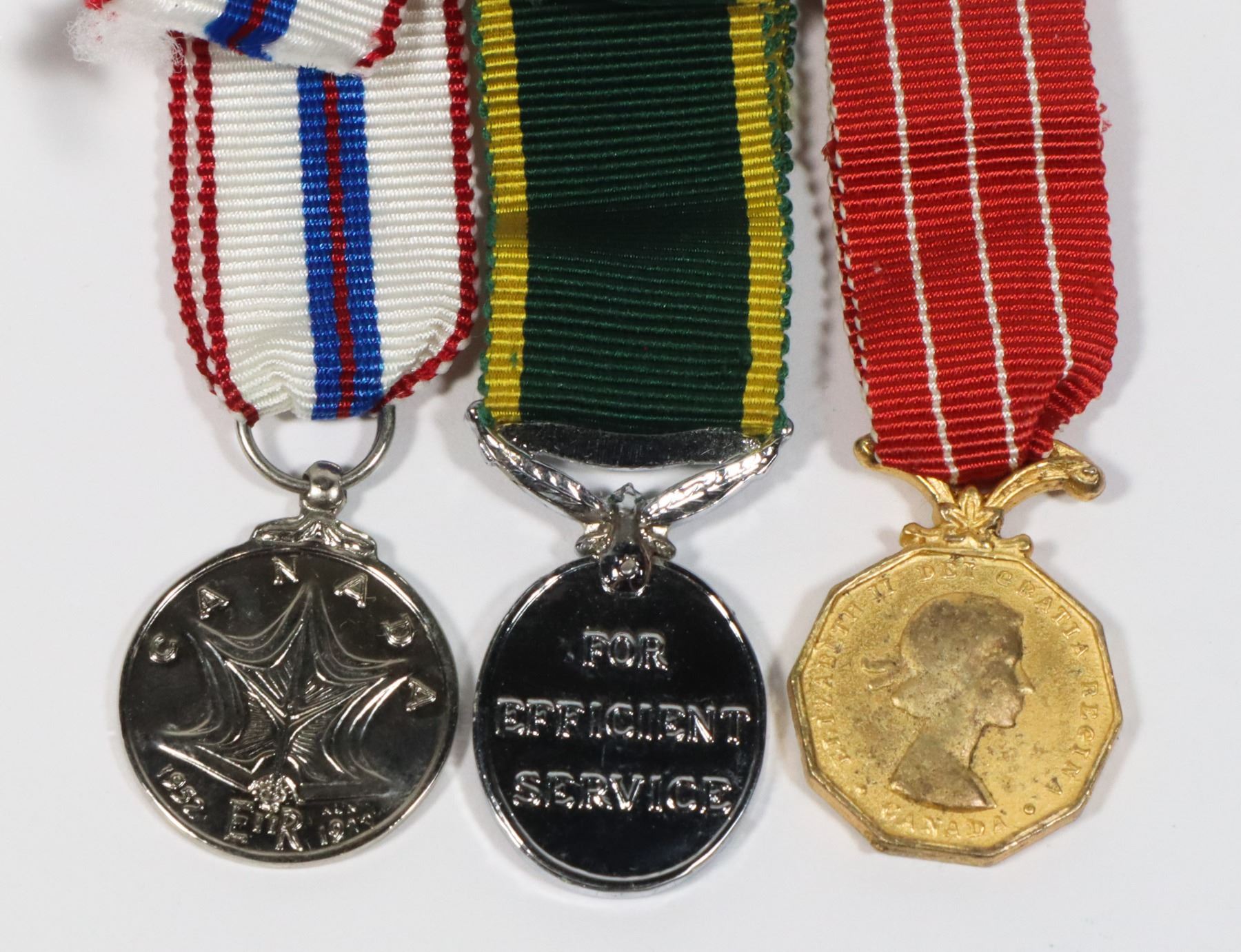 CANADIAN FORCES DECORATION CD QUEEN ELIZABETH II SILVER JUBILEE MEDAL AND CANADIAN EFFICIENCY MEDAL LOT OF 3 MINI MEDAL MINIATURE MEDALS