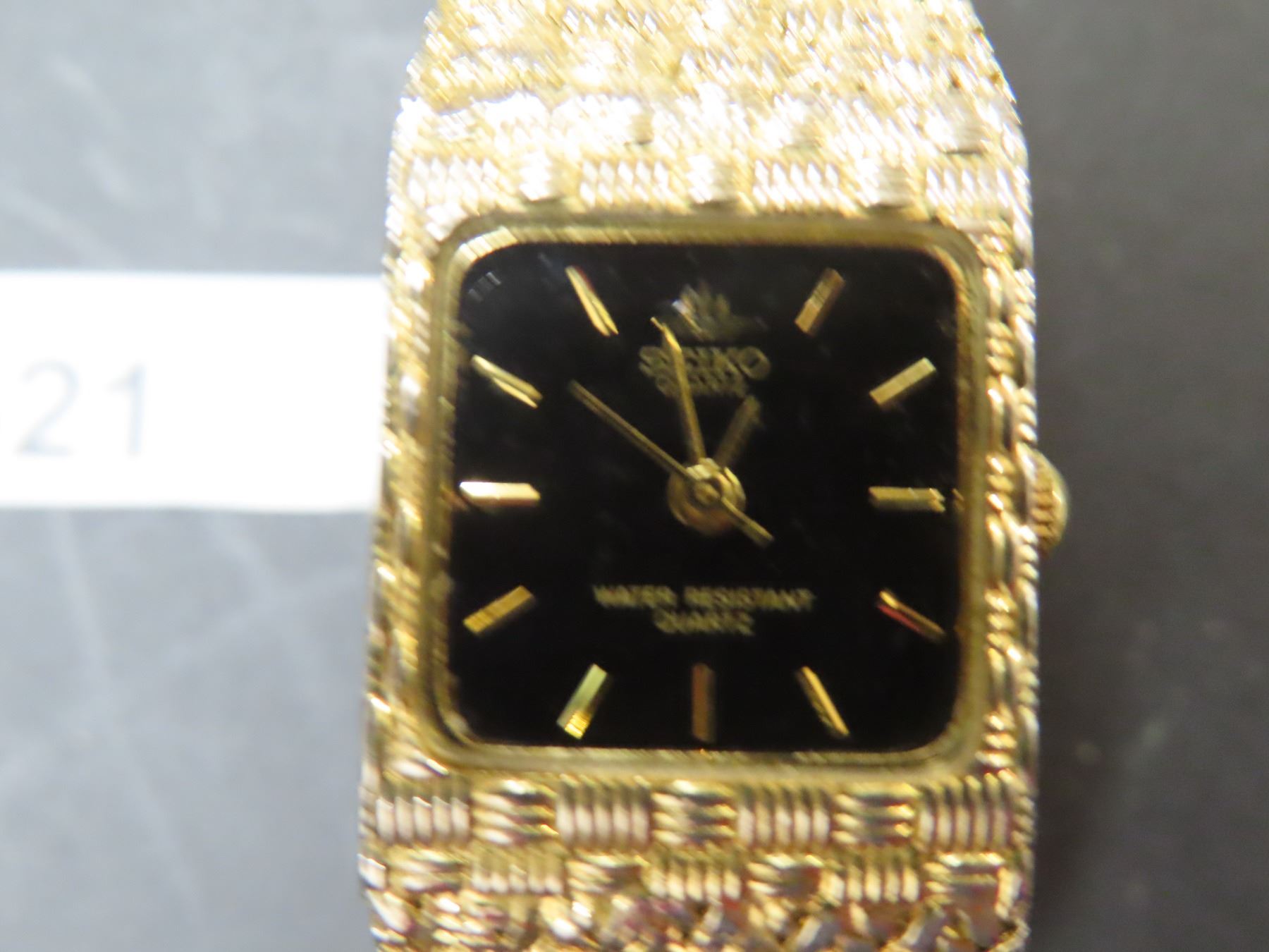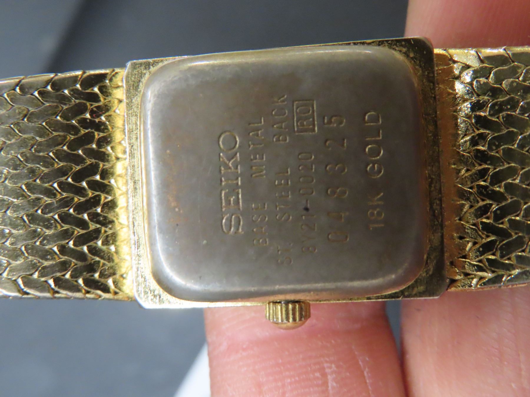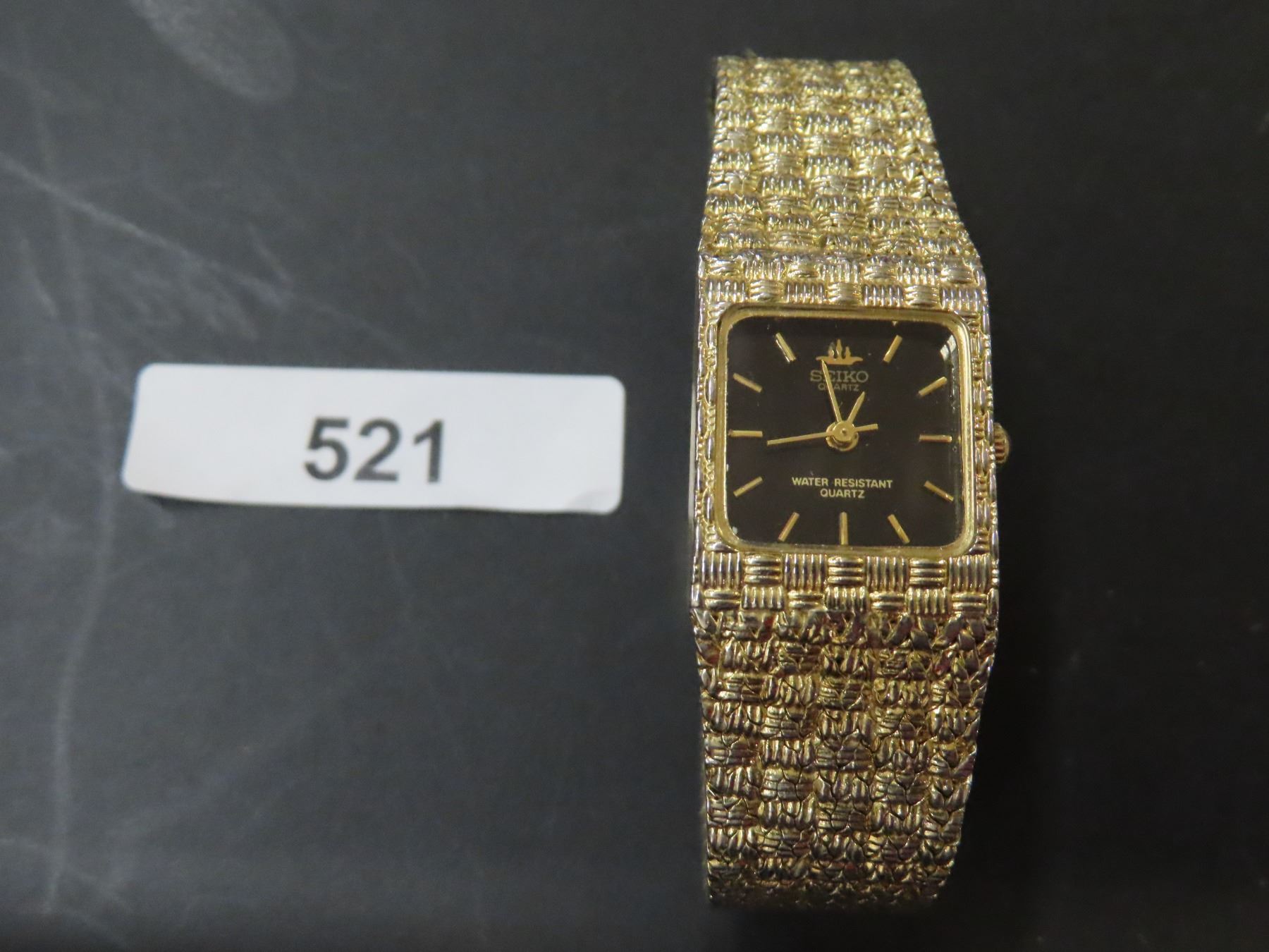 521 VINTAGE LADIES SEIKO QTZ, NEW BATTERY, RUNS- 18k gold