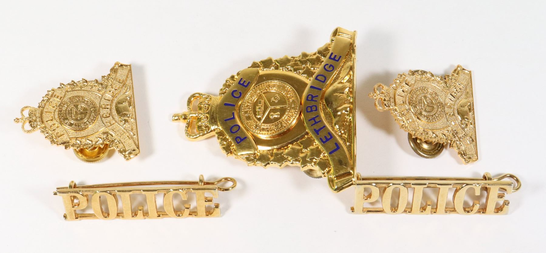 COMPLETE SHOULDER TITLE COLLAR CAP BADGE SET LATE 20TH CENTURY ALBERTA CANADA POLICE CANADIAN LAW ENFORCEMENT