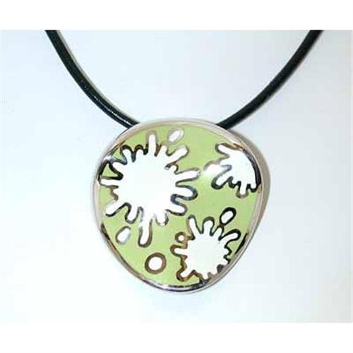 5246 MENEGATTI Silver/Enamel Pendant w/Leather Necklace