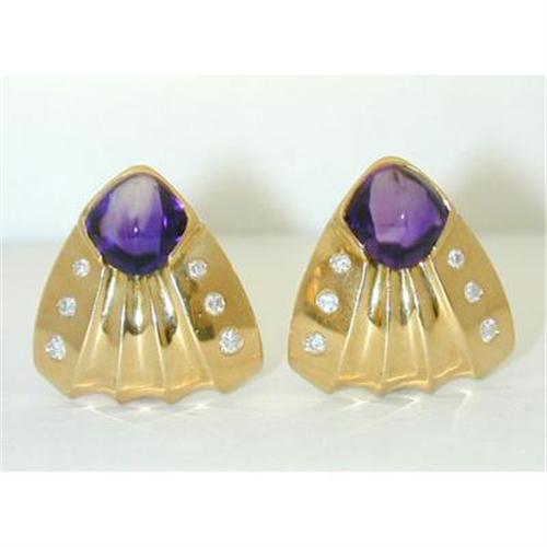 5250 18K Gold Clip-on Earrings w/ Amethyst/ Diamonds