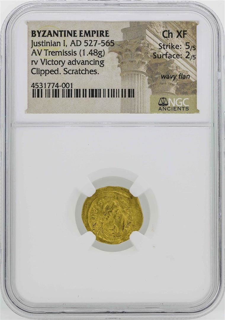 527-565 Byzantine Empire Justinan I Temissis Gold Coin NGC CH XF