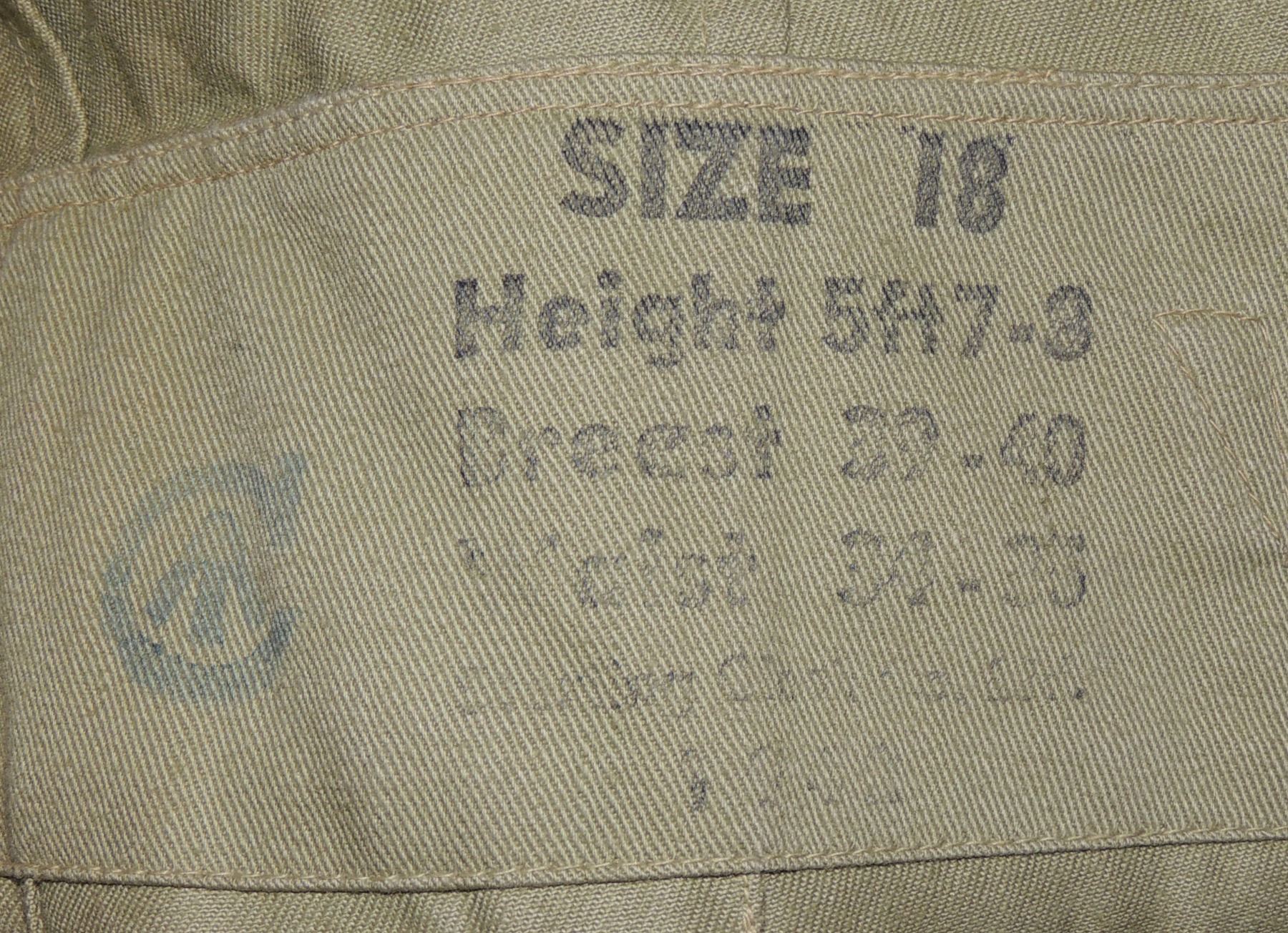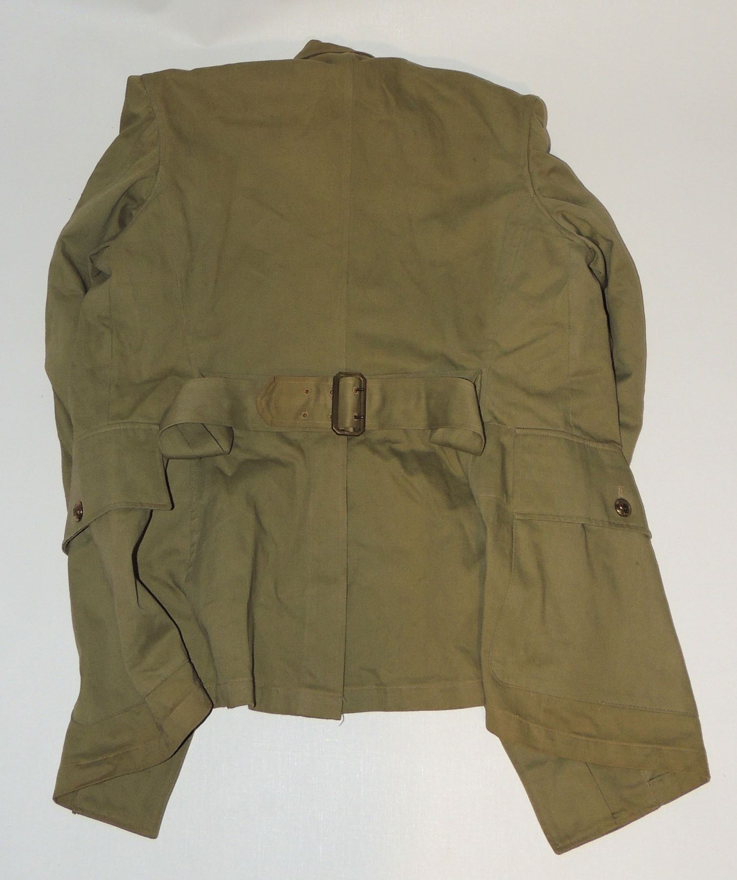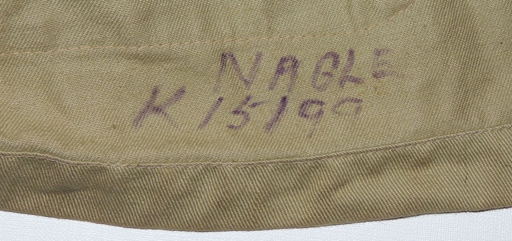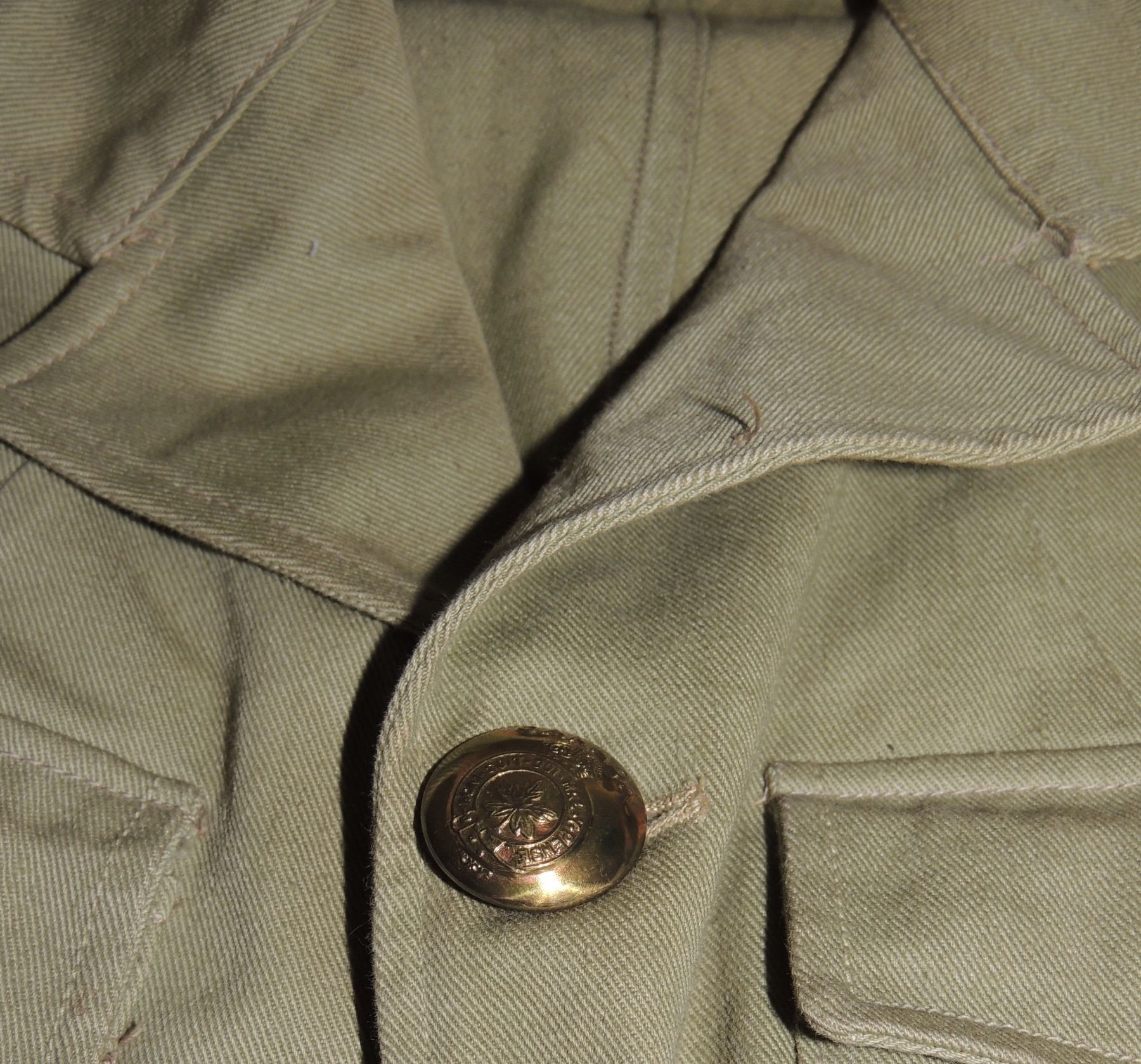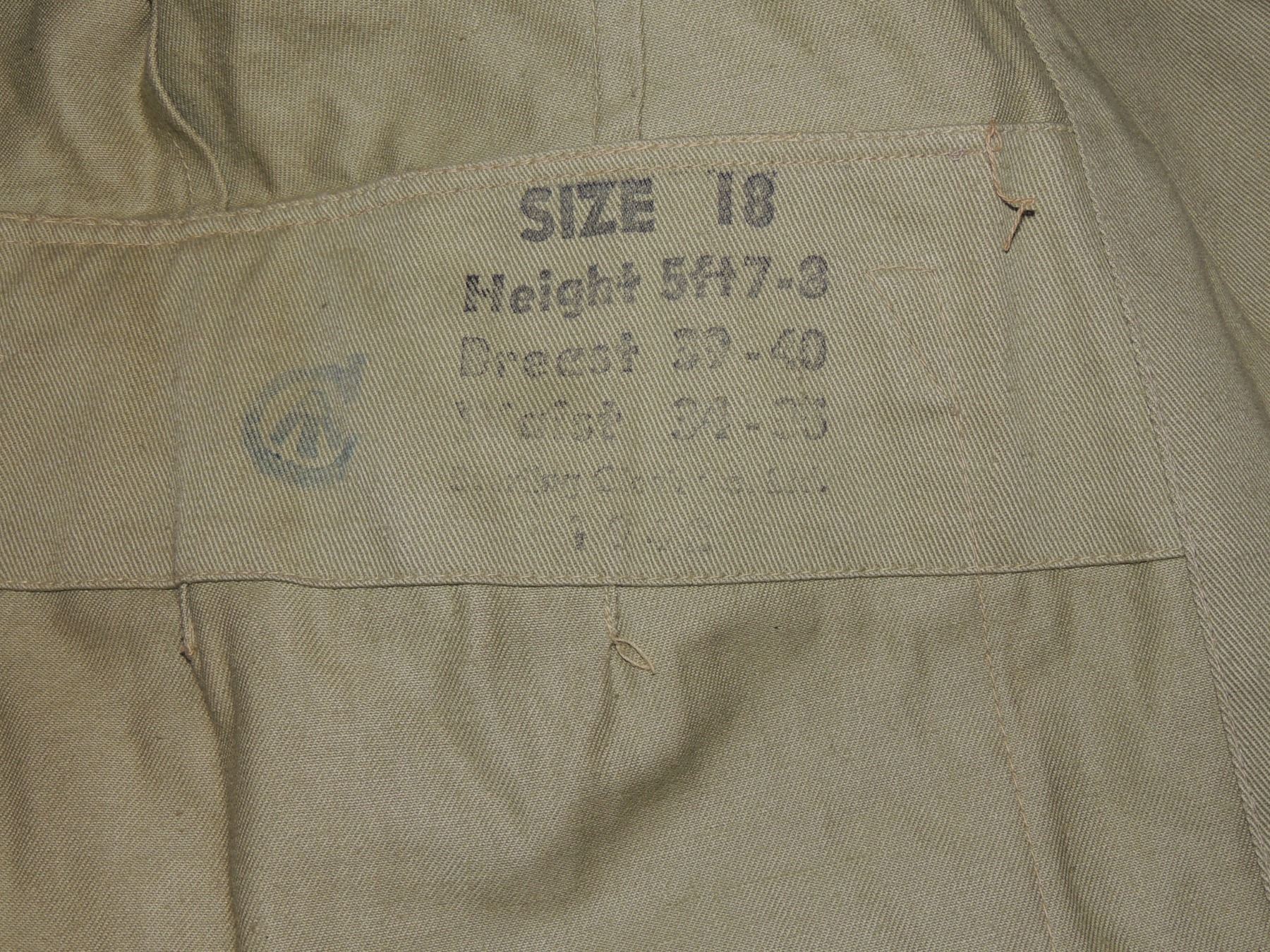 SUMMER TUNIC TO ROYAL CANADIAN ARTILLERY, NAMED TO "NAGLE K15199" OF THE 31ST HEAVY BATTERY RCA. DATED 1942, SIZE 18 WITH C-> C BROAD ARROW. WW2 WORLD WAR TWO CANADIAN UNIFORM ALLIED MILITARY FORCES