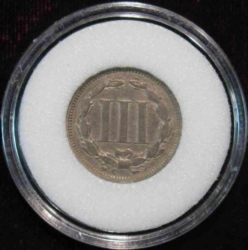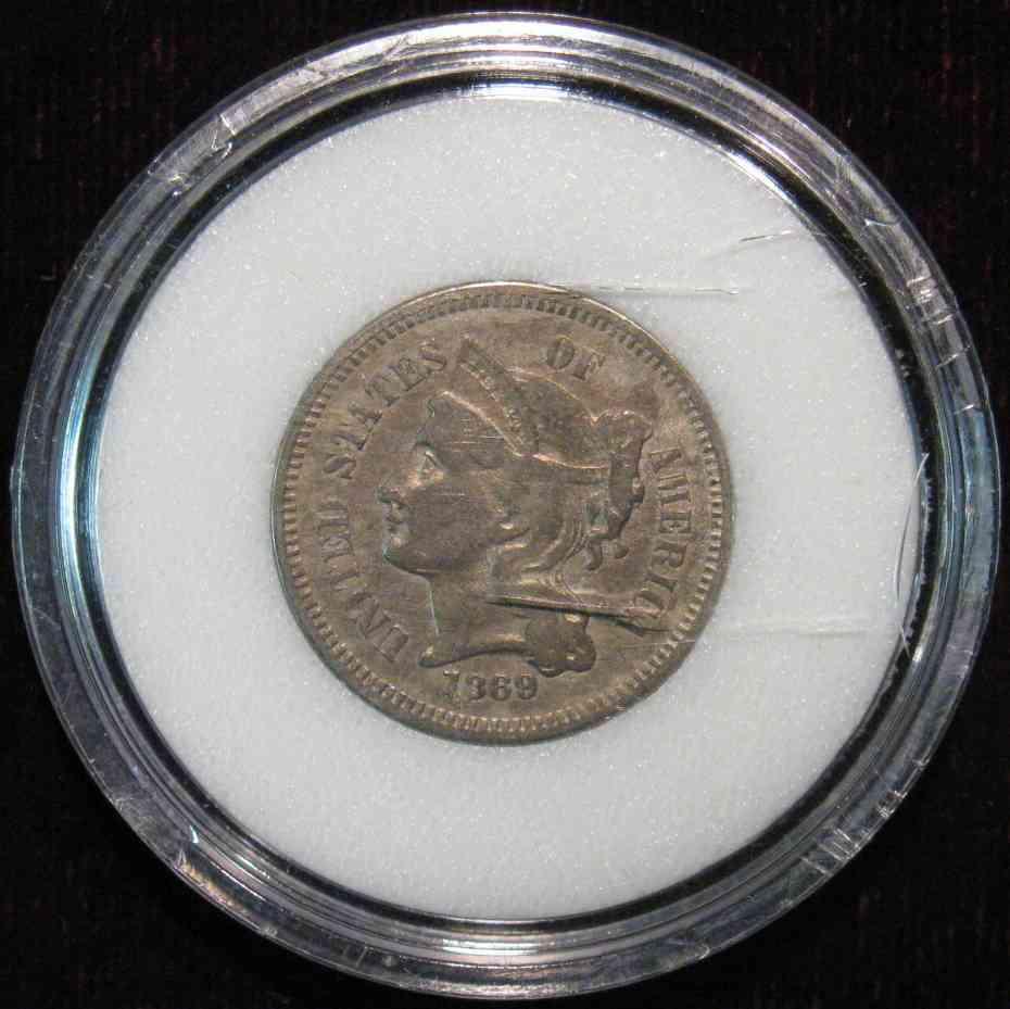 528. 1869 U.S. Three Cent Nickel. F-VF. Encapsulated.