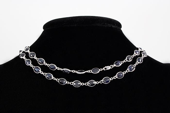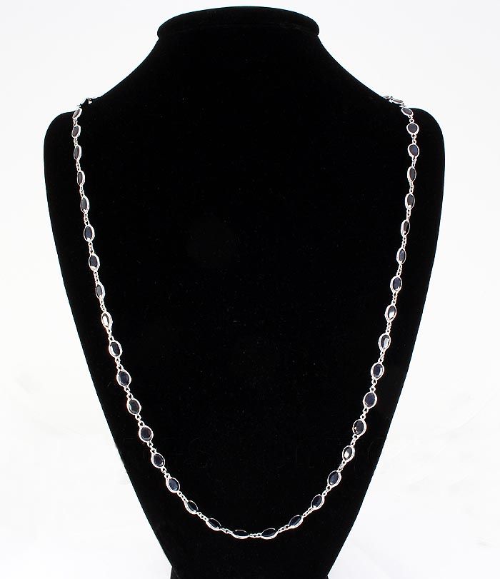 53.00CT SwarovskiBezelDesignSapphireSilverNecklace18.64 **|**|** 30' Long Bezel Sapphire Corrundum Gemstone in Swarovski Design Silver Necklace; 53pcs 7x5mm ; MSRP: $3900
