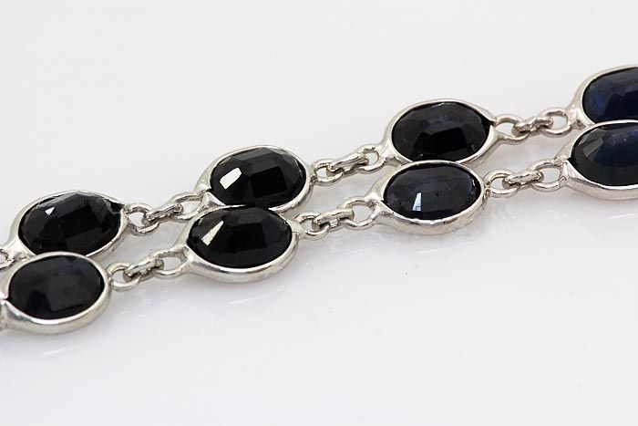 53.00CT SwarovskiBezelDesignSapphireSilverNecklace18.64 **|**|** 30' Long Bezel Sapphire Corrundum Gemstone in Swarovski Design Silver Necklace; 53pcs 7x5mm ; MSRP: $3900