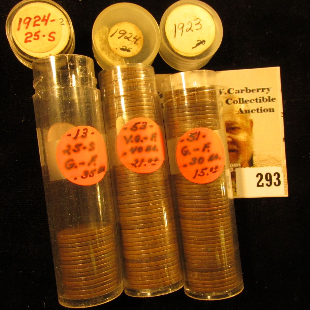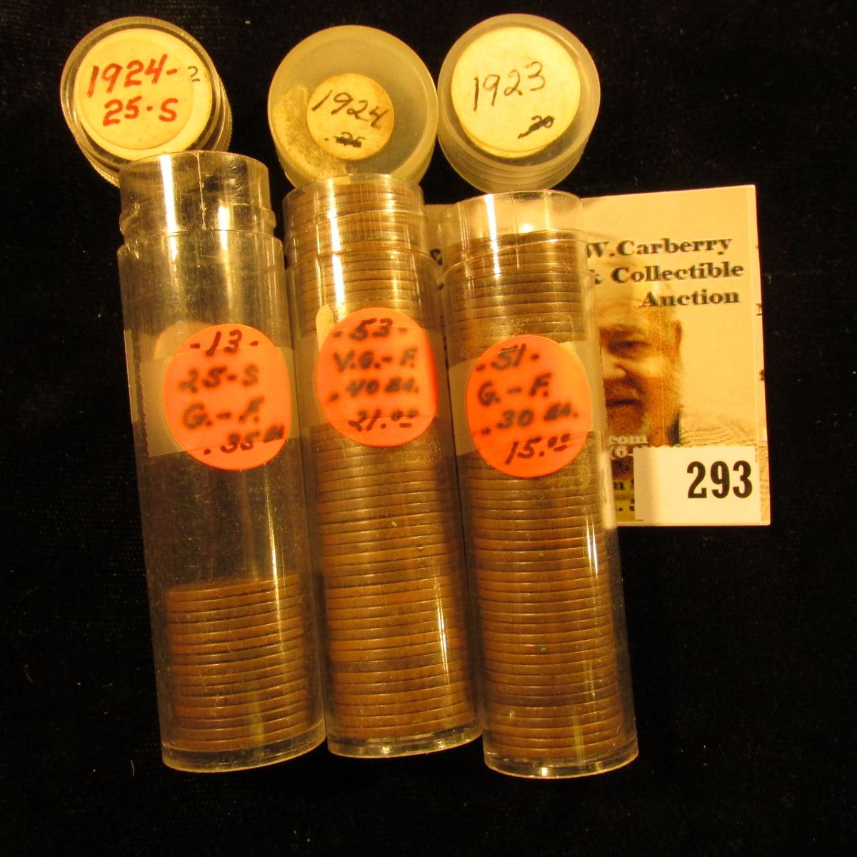 (53) 1923 P, (55) 24 P, (2) 24 S, & (13) 25 S U.S. Lincoln Cents in a plastic coin tubes.