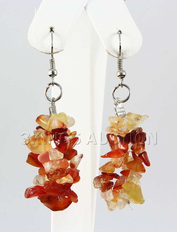 53.25CTW 2in. CARNELIAN CHIPPED STONE HOOK EARRING **|**|** 53.25CTW 2in. CARNELIAN CHIPPED STONE METAL HOOK EARRING ; MSRP: $300