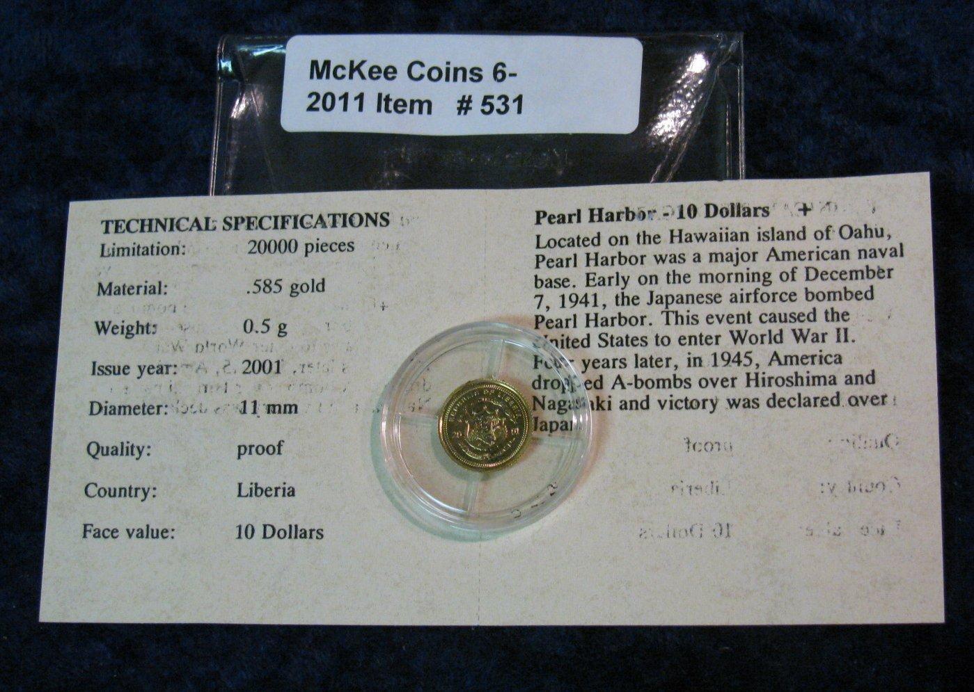 531. 2001 Republic of Liberia $10 Proof Gold Piece.