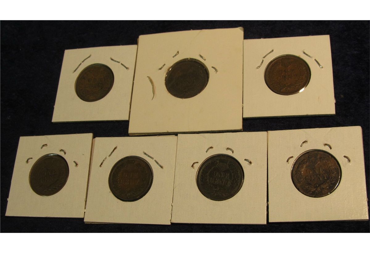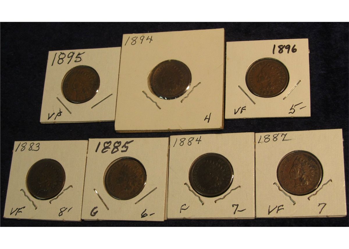 533. 1883 VF, 84 F, 86 G, 87 VF, 94 G, 95 VF, & 96 VF Indian Head Cents. Redbook value $56.00.