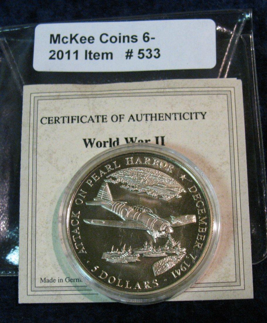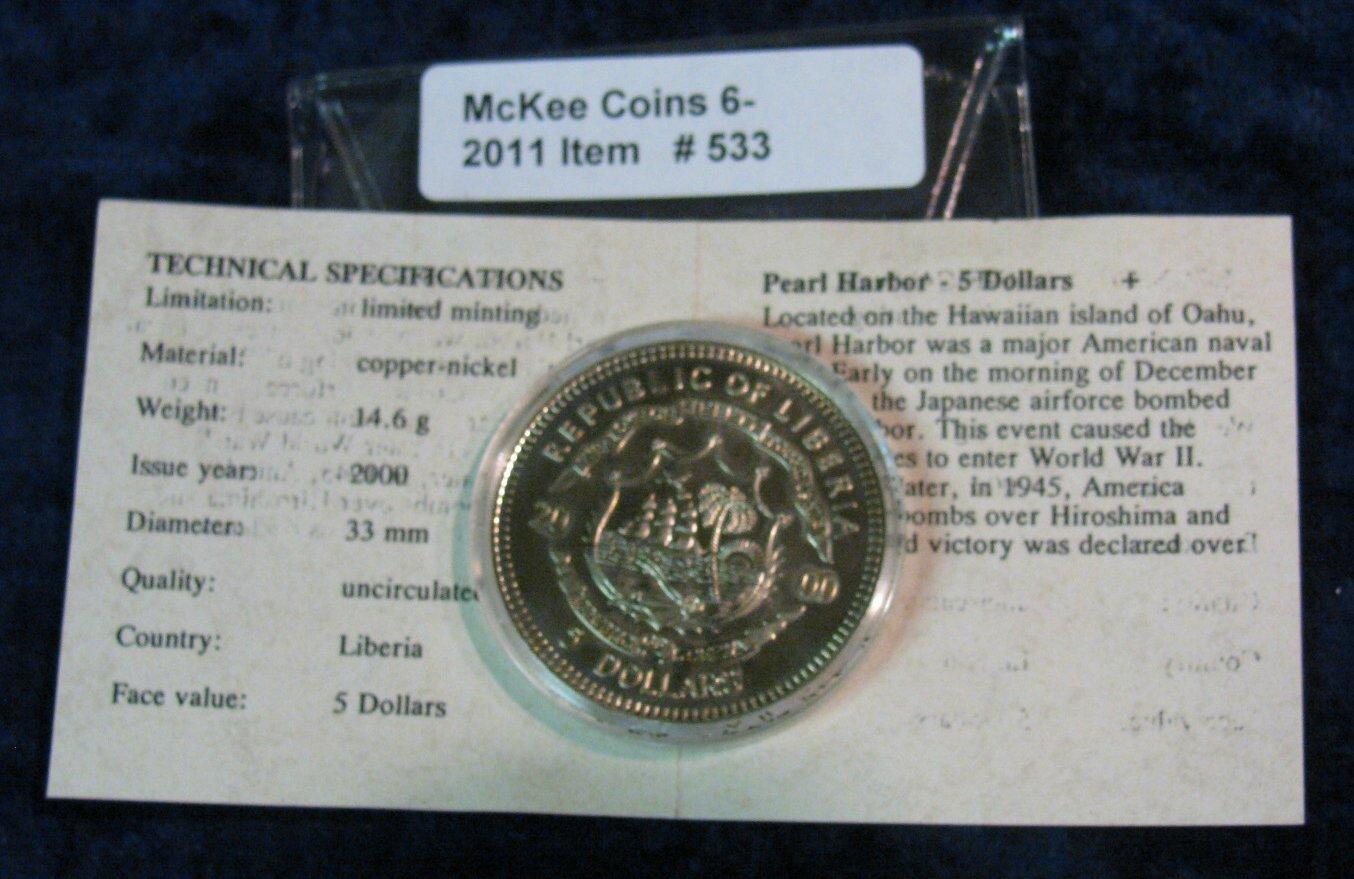 533. 2000 Republic of Liberia $5 BU Pearl Harbor Commemorative.