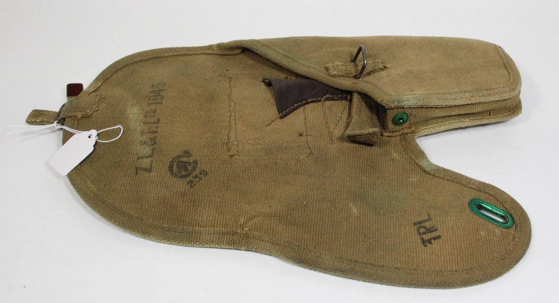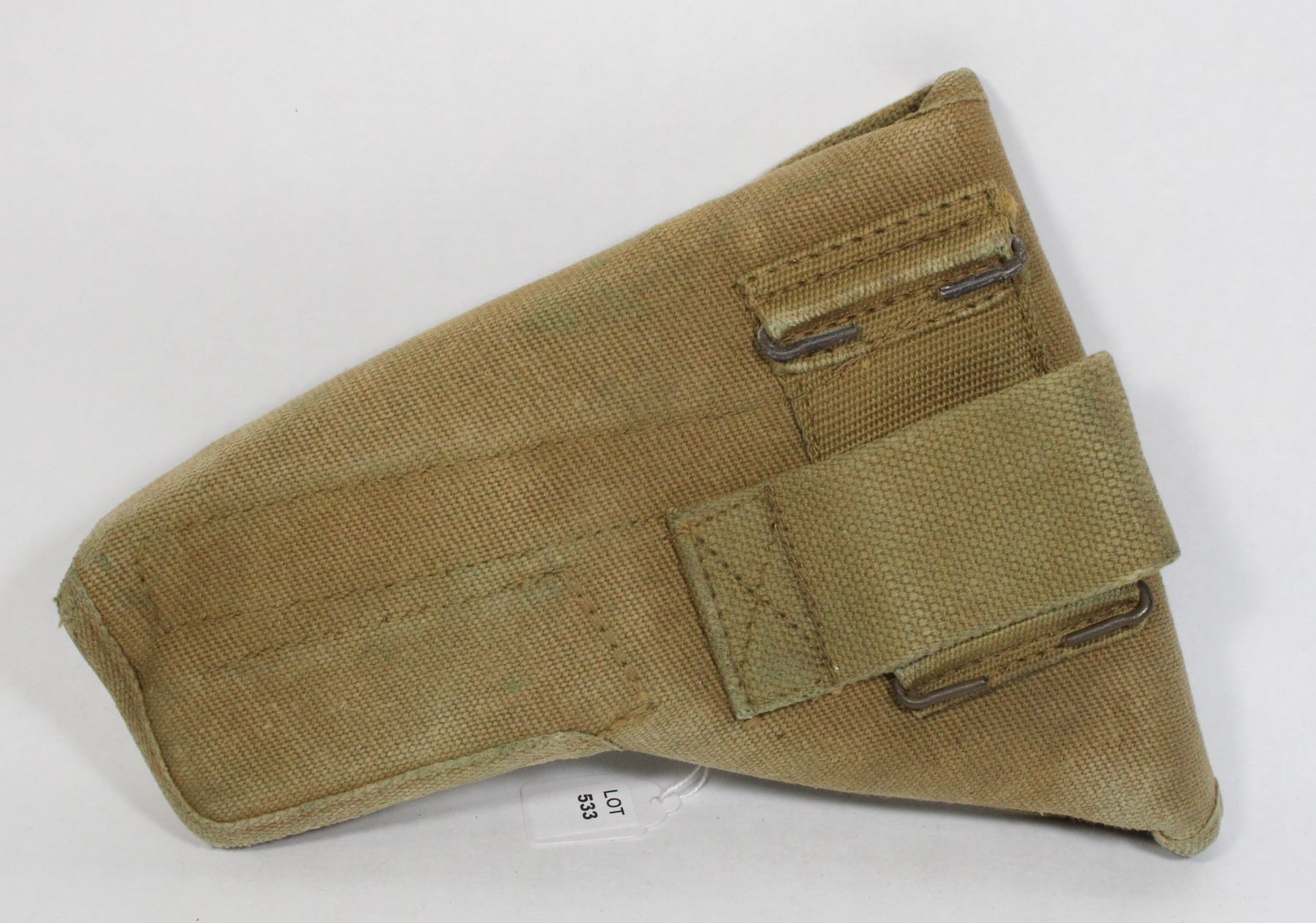 Z.L. & T. LTD 1945 WITH C-> 239 C BROAD ARROW MARKING AND "TPL" MARKING. KHAKI CANADIAN MILITARY BROWNING INGLIS PISTOL HOLSTER. WW2 WORLD WAR TWO CANADIAN EQUIPTMENT ALLIED MILITARY FORCES