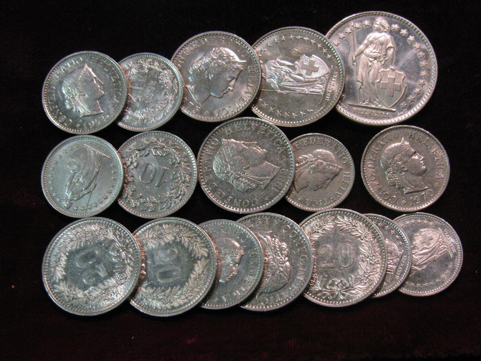 534. (17) Switzerland Coins with denominations up to Two Francs.