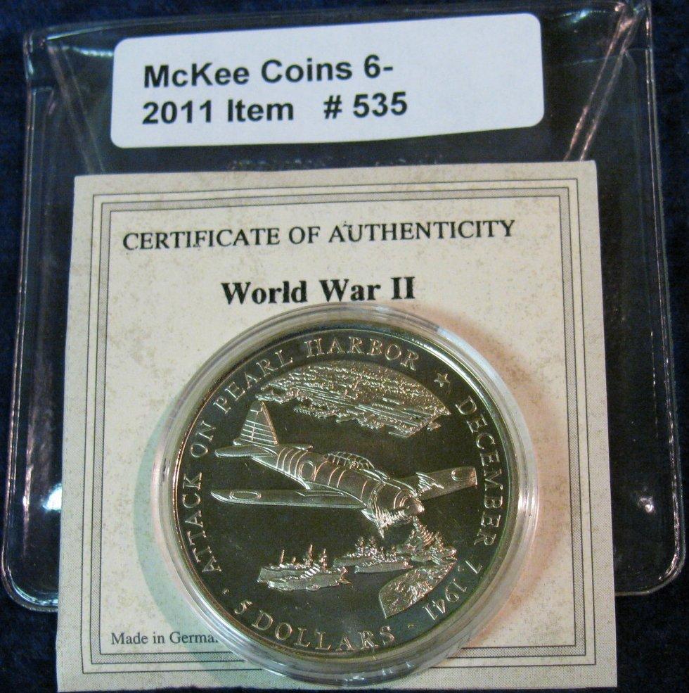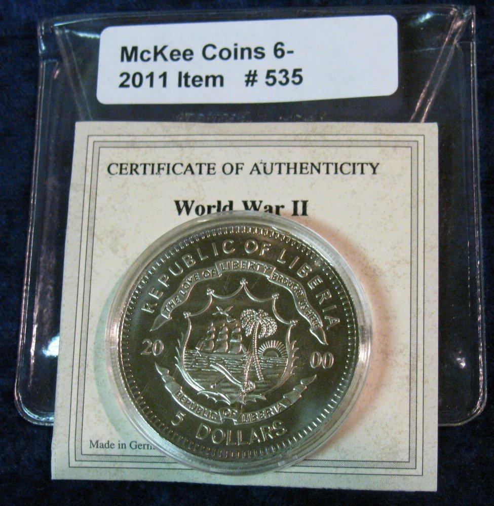 535. 2000 Republic of Liberia $5 BU Pearl Harbor Commemorative.