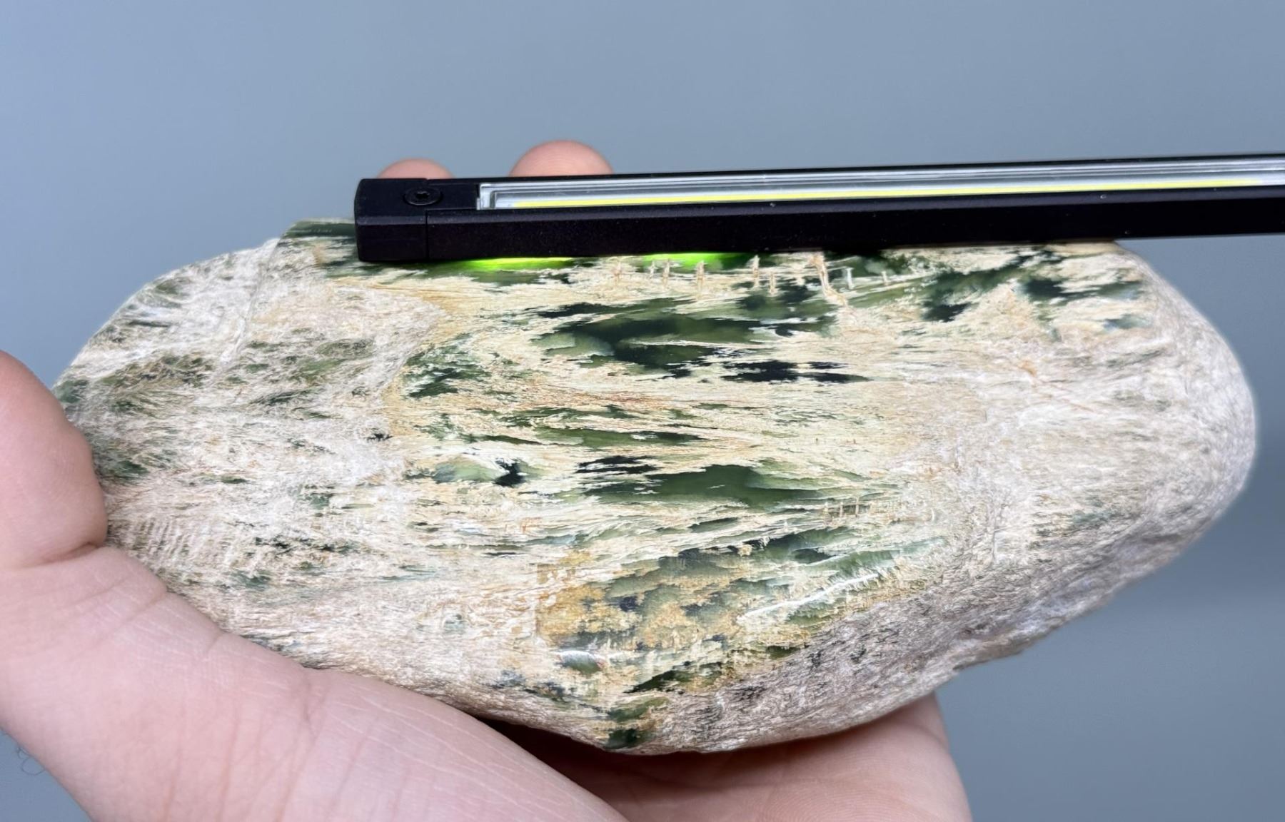 1071 grams or 5355 Carats. 6 1/4" by 3 1/4" by 2 1/4".