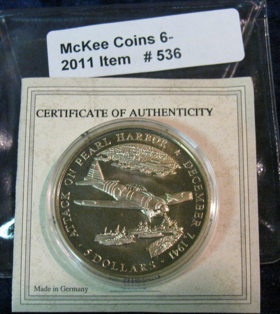 536. 2000 Republic of Liberia $5 BU Pearl Harbor Commemorative.