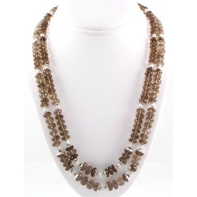 537.5ctw Smokey Quartz 2Row Silver Necklace **|**|** ; MSRP: $600