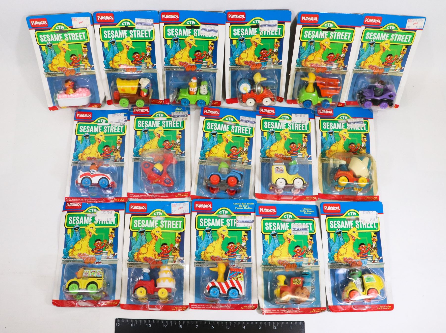 LOT OF 16 INCLUDING BERT ERNIE BIG BIRD COUNT GROVER COOKIE MONSTER OSCAR 1987 NEW OLD STOCK NOS - FROM BUYOUT OF 1980'S BRITISH TOY STORE, INCLUDING MODEL KITS, DIECAST METAL CARS & VEHICLES, TRAINS, VINTAGE AND INTERNATIONAL COLLECTABLES INCLUDING LATER 1990'S TOYS AND EARLY 1960'S TOYS AND MORE